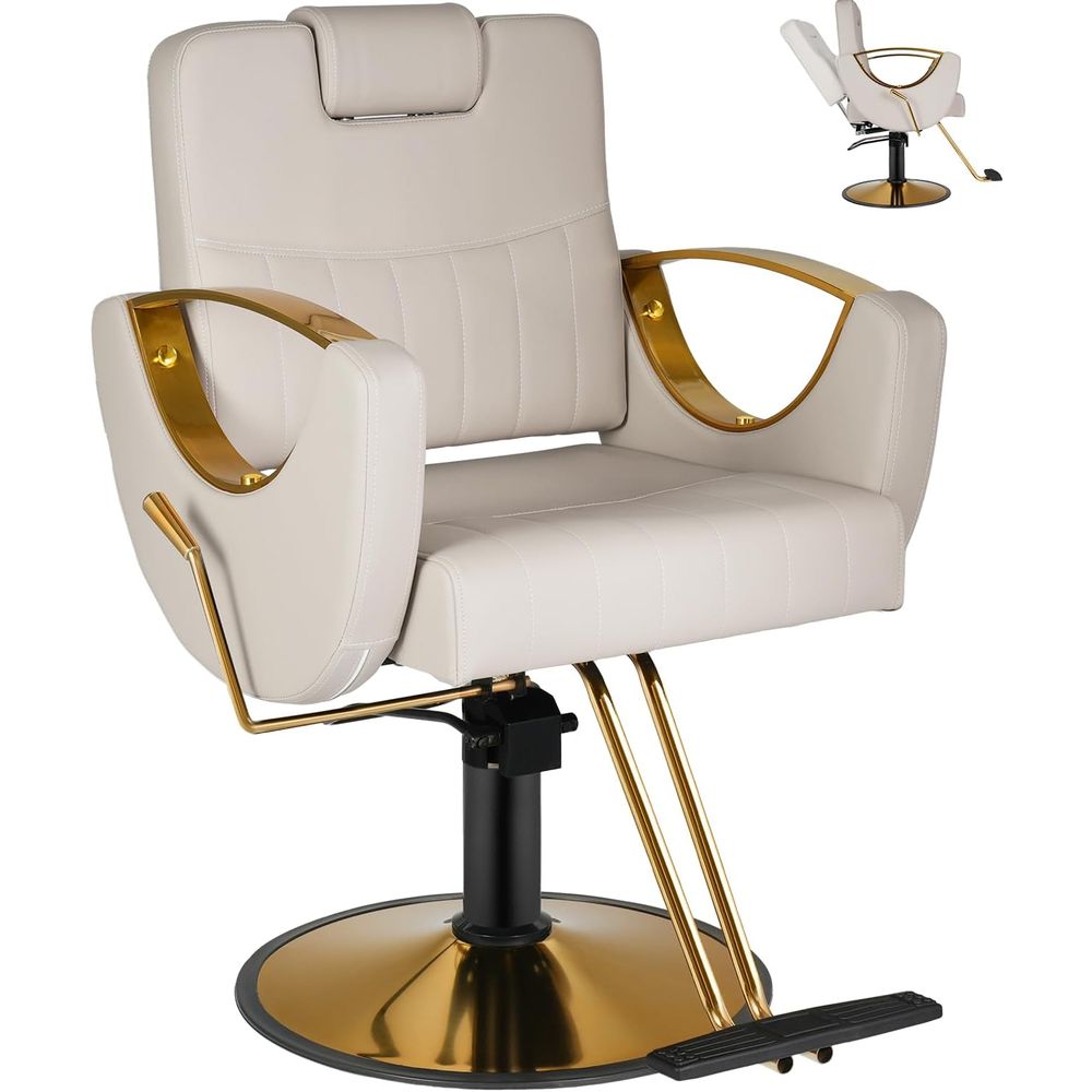 Durable & Easy to Clean PU Leather Upholstery: Wrapped in premium waterproof PU leather, this stylist chair resists stains, spills, and scuffs while being easy to wipe clean. The gold steel frame and base provide lasting durability with a glamorous modern aesthetic.