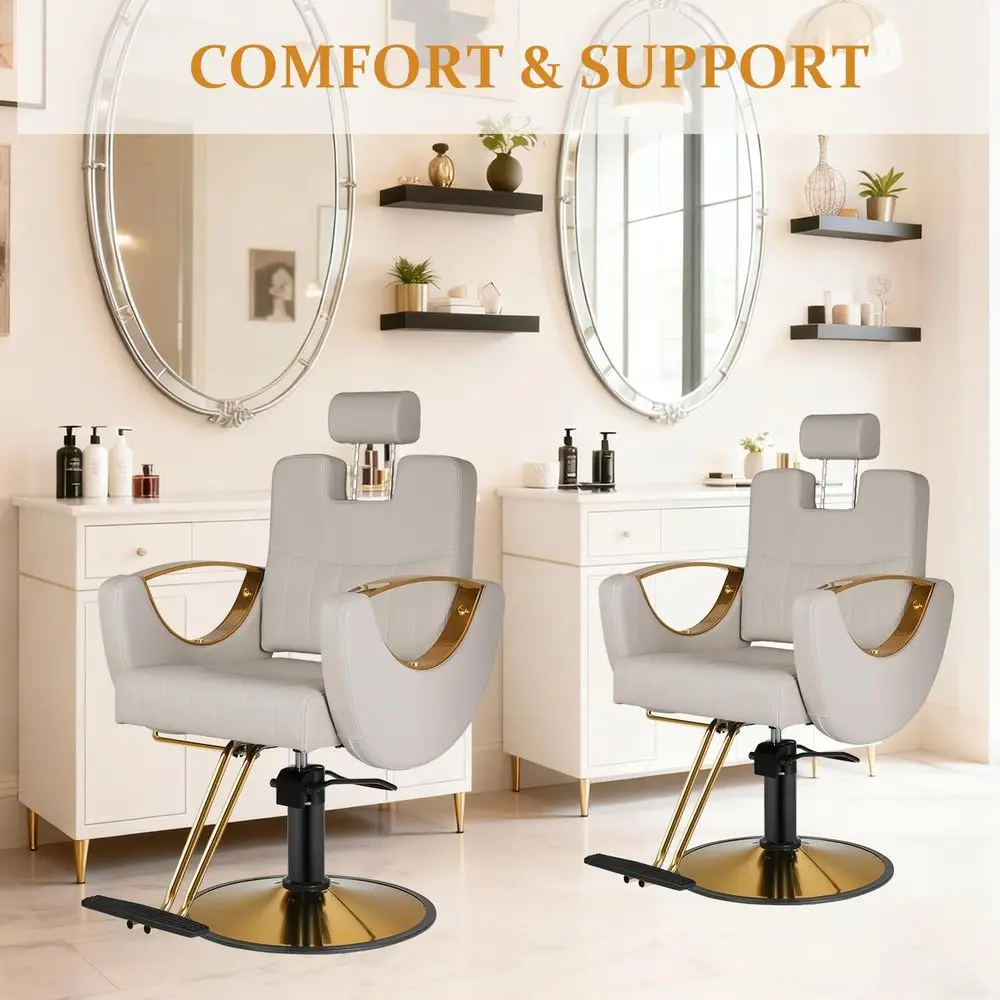 Superior Comfort with High-Density Cushion: The 5-inch thick seat cushion is filled with high-resilience sponge that maintains its shape and comfort even after long hours of use. The ergonomic backrest and padded armrests ensure maximum support for clients, making it ideal for extended styling sessions.