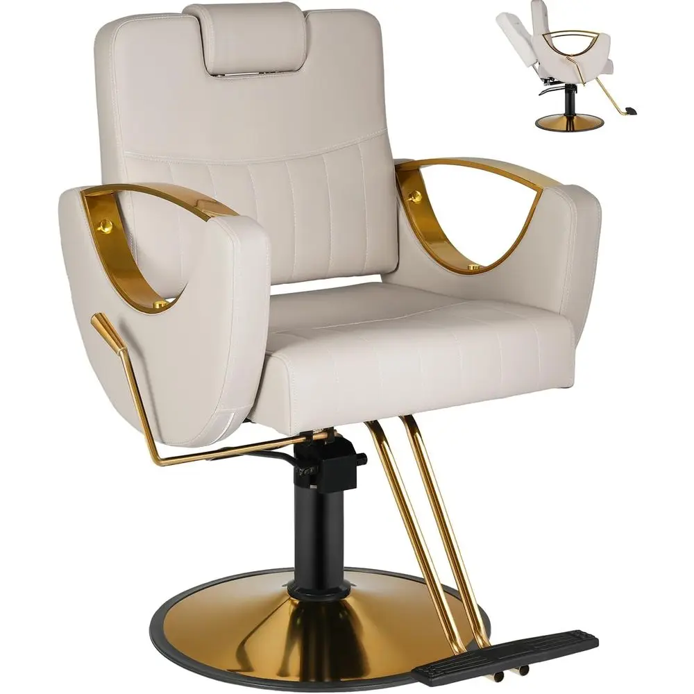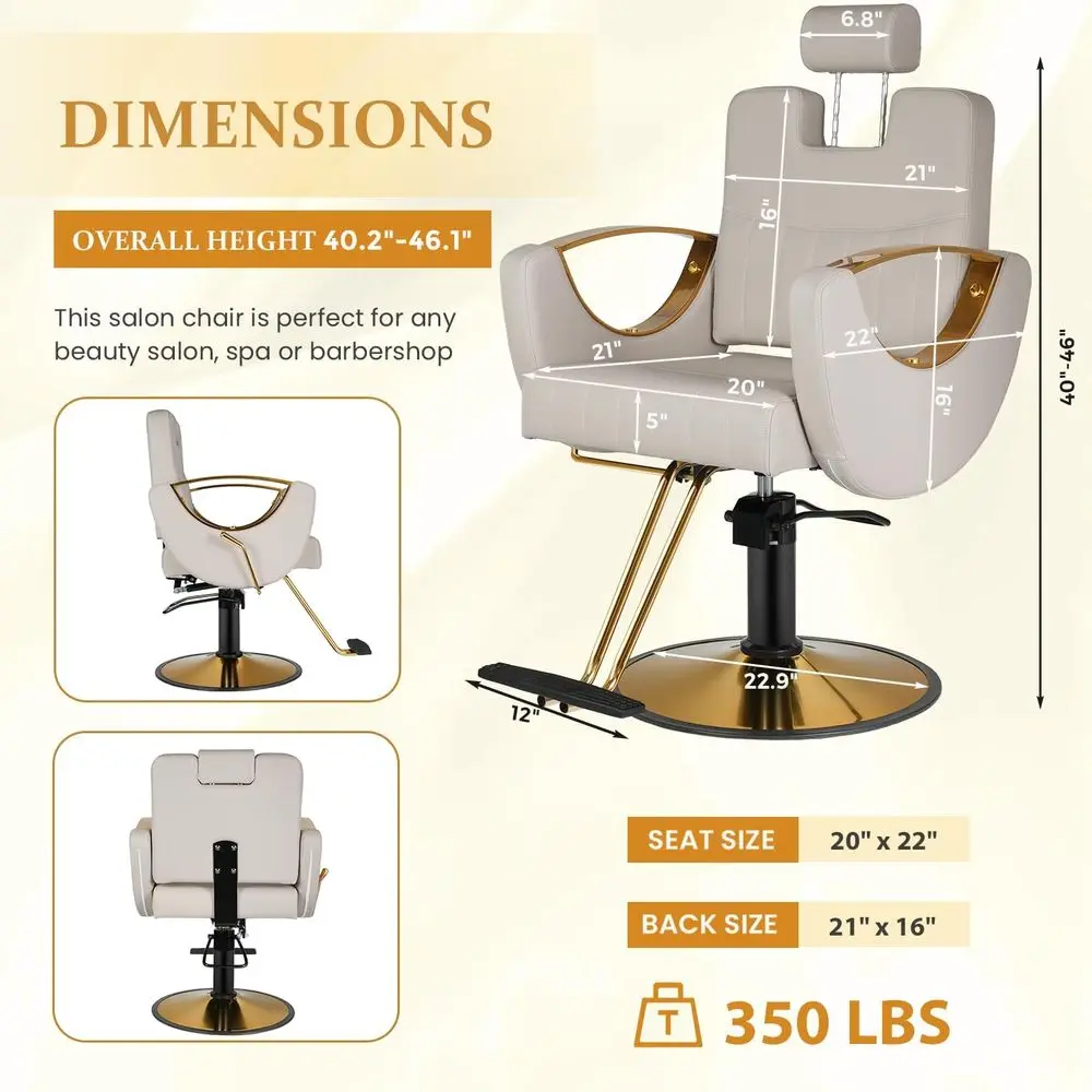 Heavy-Duty Hydraulic Pump with 360° Swivel: With a 350 lbs weight capacity, the hydraulic lift allows seamless height adjustment with a simple foot pedal. The 360-degree swivel base locks securely in place, ensuring the chair remains stable and safe during cutting, shaving, or shampooing sessions.