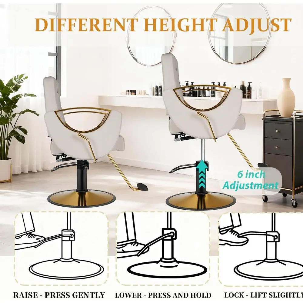 Durable & Easy to Clean PU Leather Upholstery: Wrapped in premium waterproof PU leather, this stylist chair resists stains, spills, and scuffs while being easy to wipe clean. The gold steel frame and base provide lasting durability with a glamorous modern aesthetic.