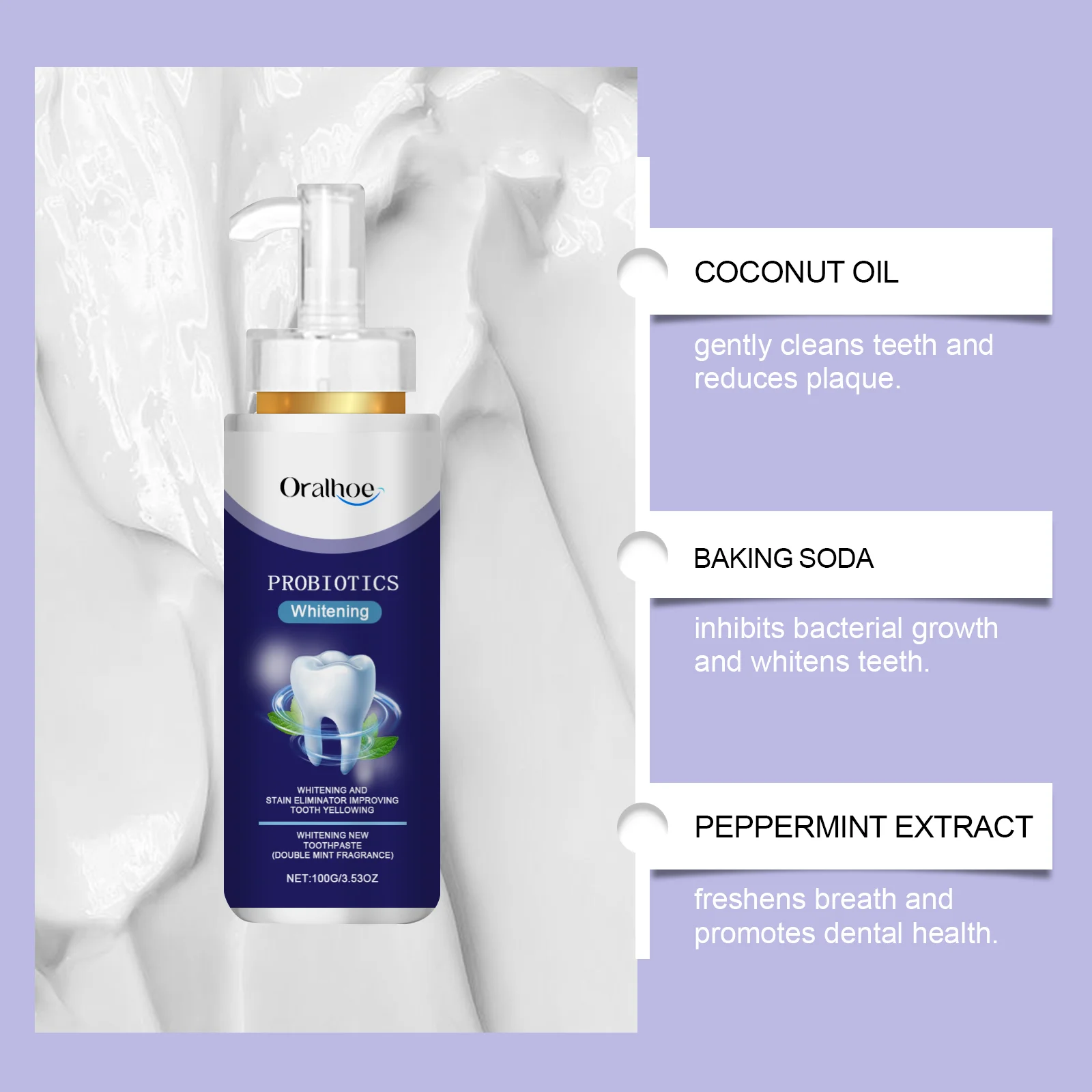 2. It deeply cleans the gum surface, repairs tooth enamel, and maintains long-term oral health. It quickly and gently dissolves stubborn stains caused by coffee, tea, and other stains, visibly whitening teeth for a confident smile.