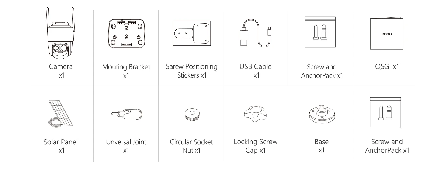 -1x Solar Panel-1x Mounting bracket-1x Screw and Wall Anchor pack