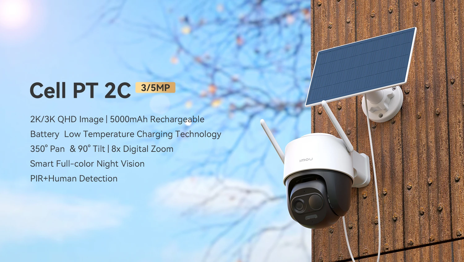 2K/3K QHD Image | 5000mAh Rechargeable Battery | Low Temperature Charging Technology | 350° Pan & 90° Tilt | 8x Digital Zoom | Smart Full-color Night Vision | PIR+Human Detection