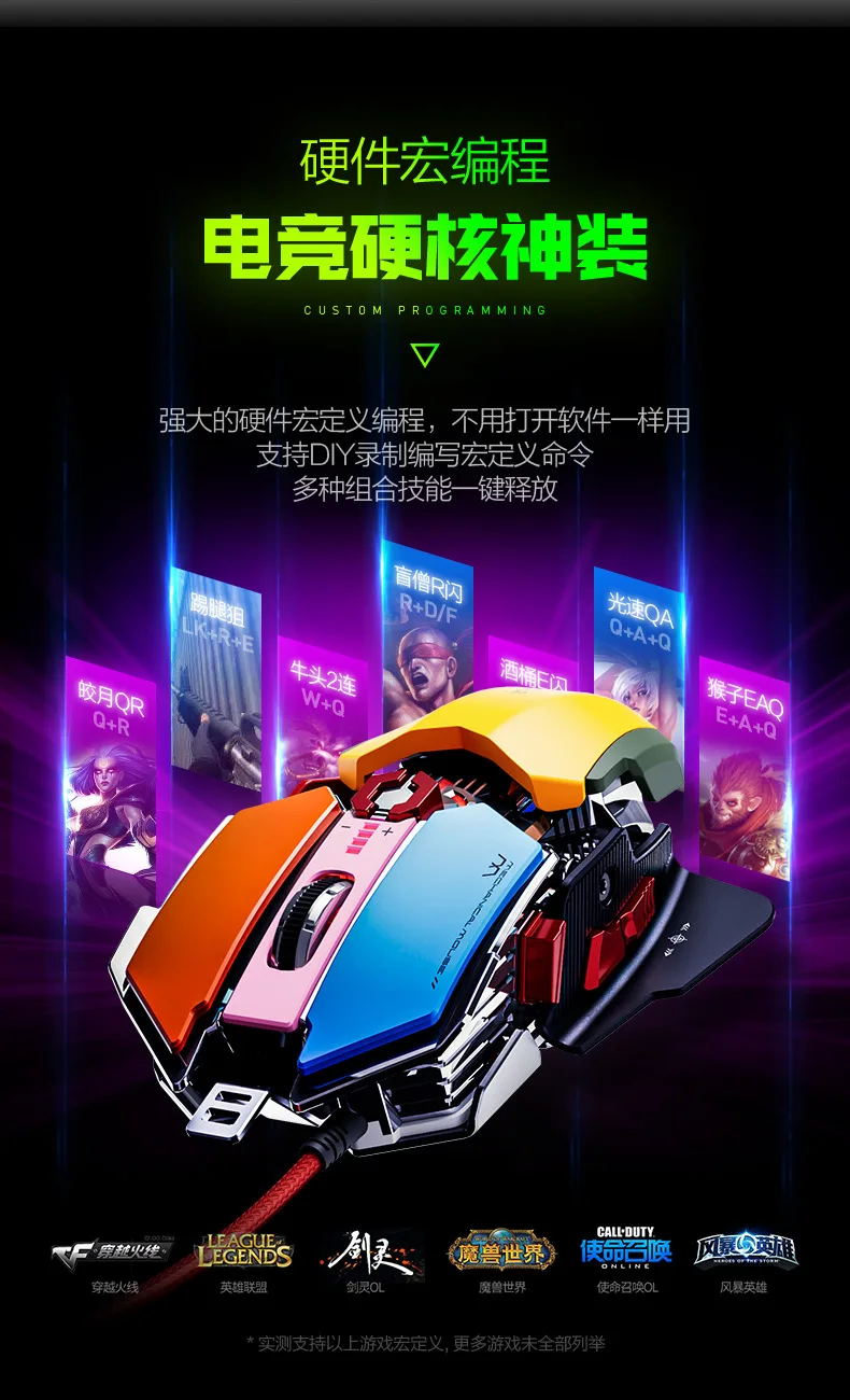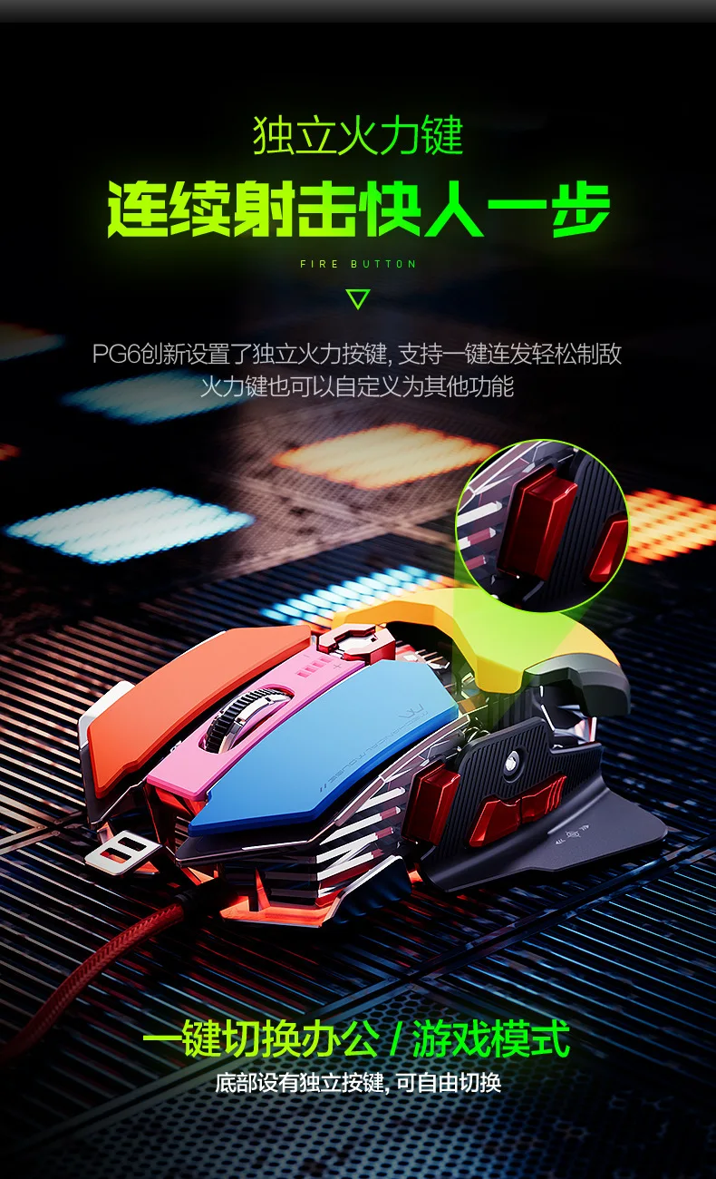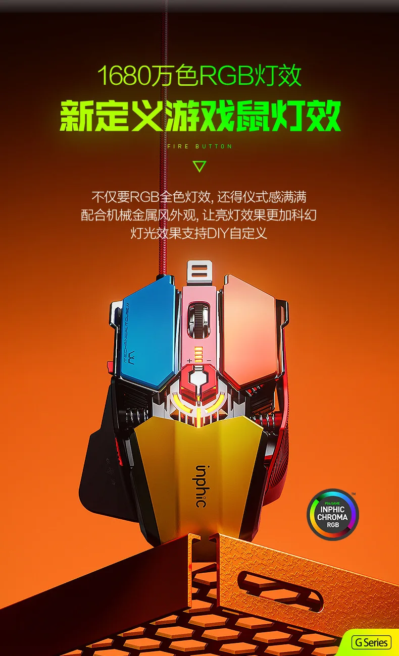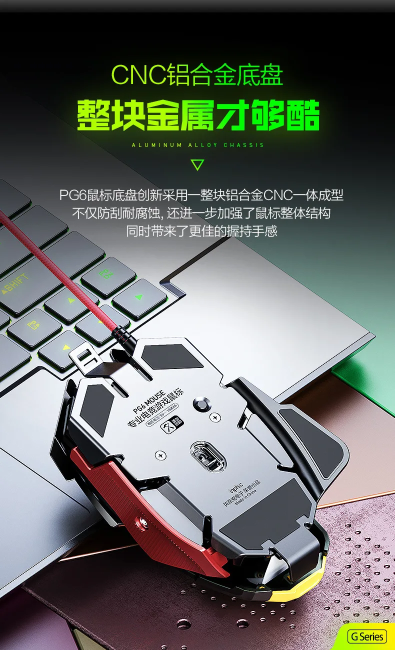 inphic PG6 wired mouse esports game hardware macro editing RGB glowing office USB desktop laptop Mechanical metal mecha mouse