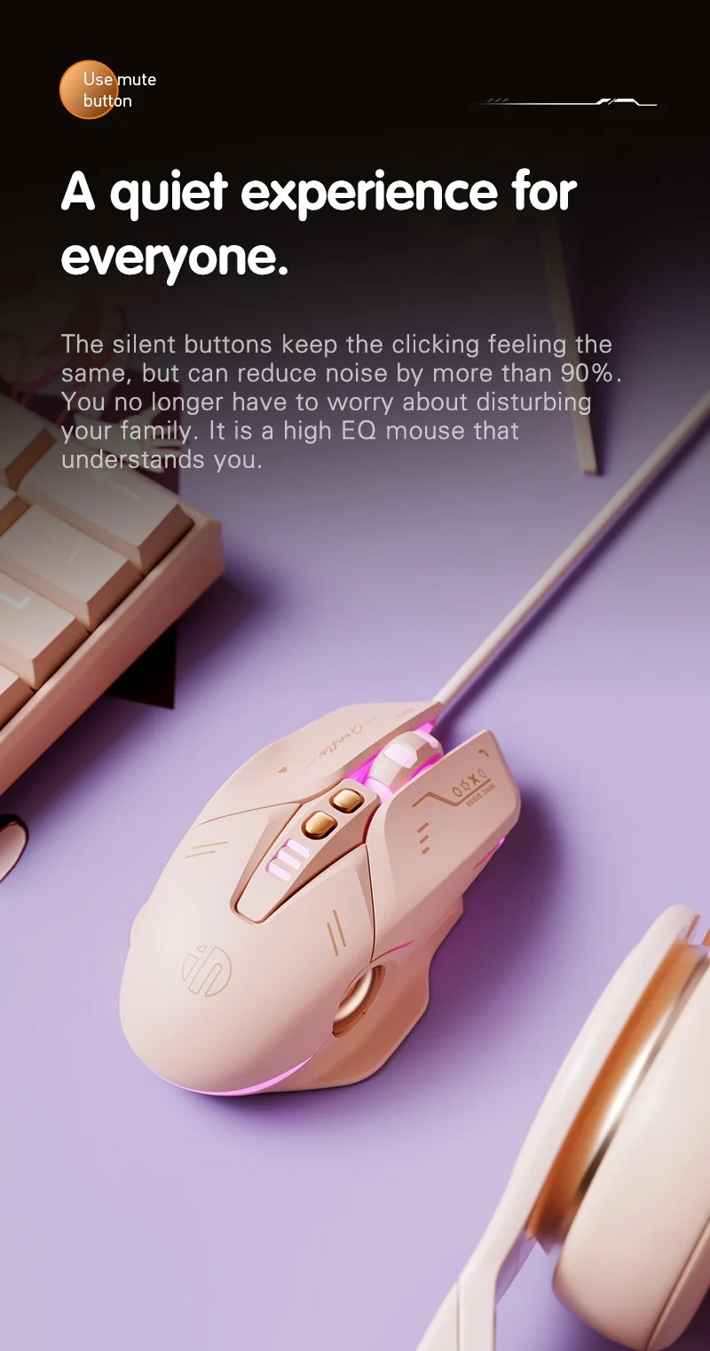 The silent buttons keep the clicking feeling the same, but can reduce noise by more than 90%. You no longer have to worry about disturbing your family. It is a high EQ mouse that understands you.