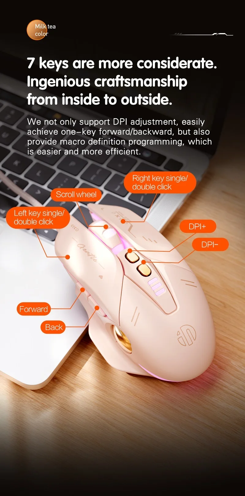We not only support DPI adjustment, easily achieve one-key forward/backward, but also provide macro definition programming, which is easier and more efficient.
