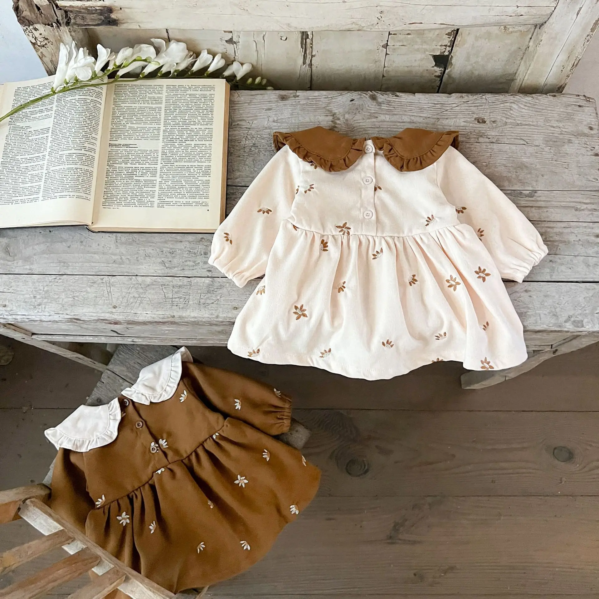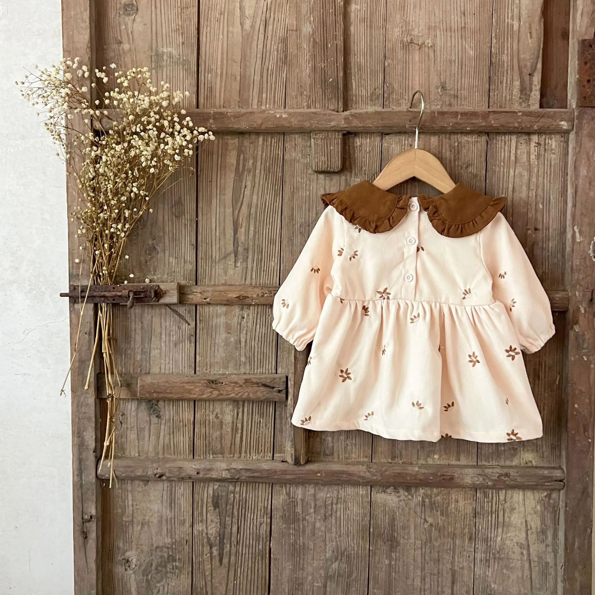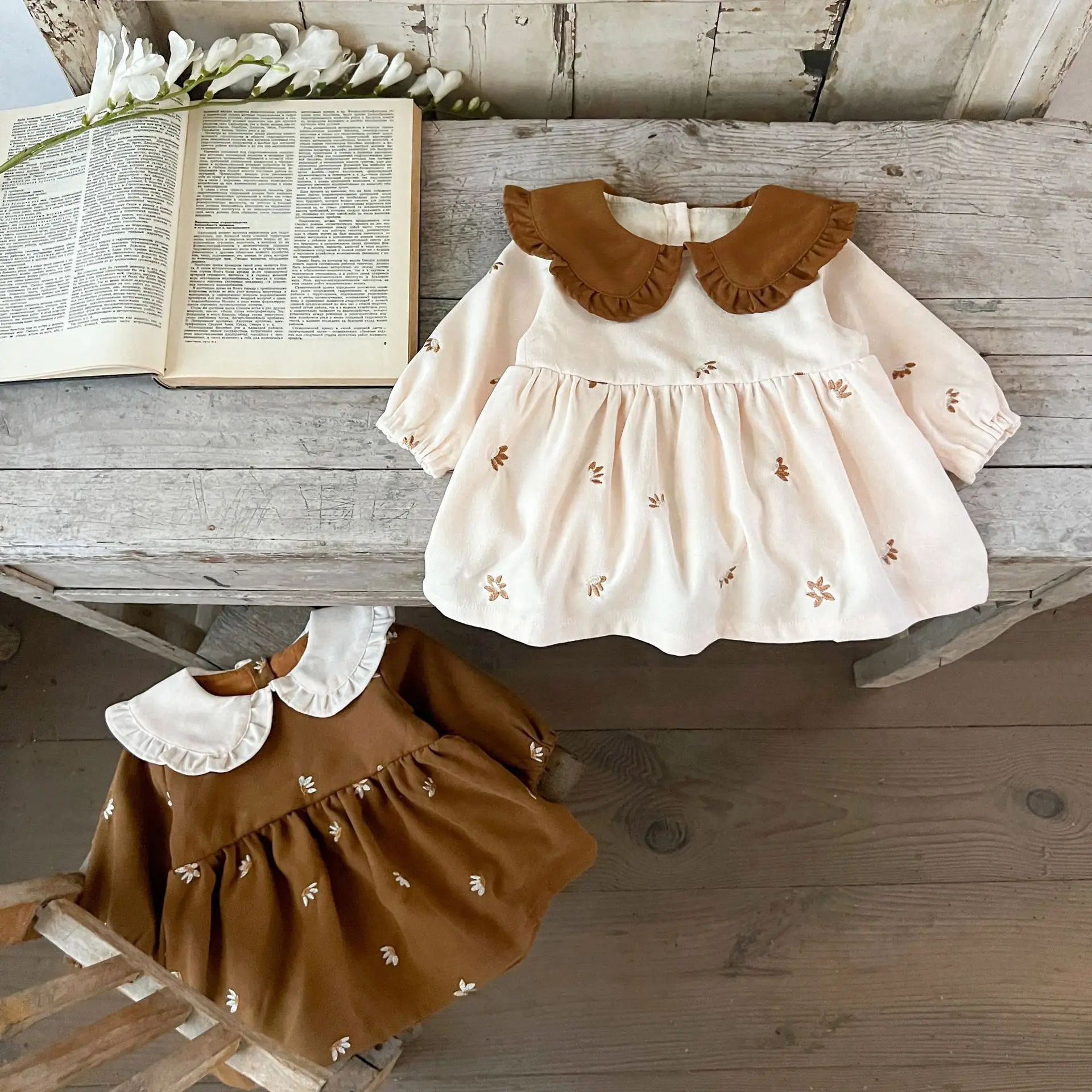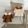 Ins Autumn Infant Baby Girl Dress Cotton Floral Print Long Sleeve Infant Girl Dress Contrast Turn Down Collar Toddler Girl Dress
