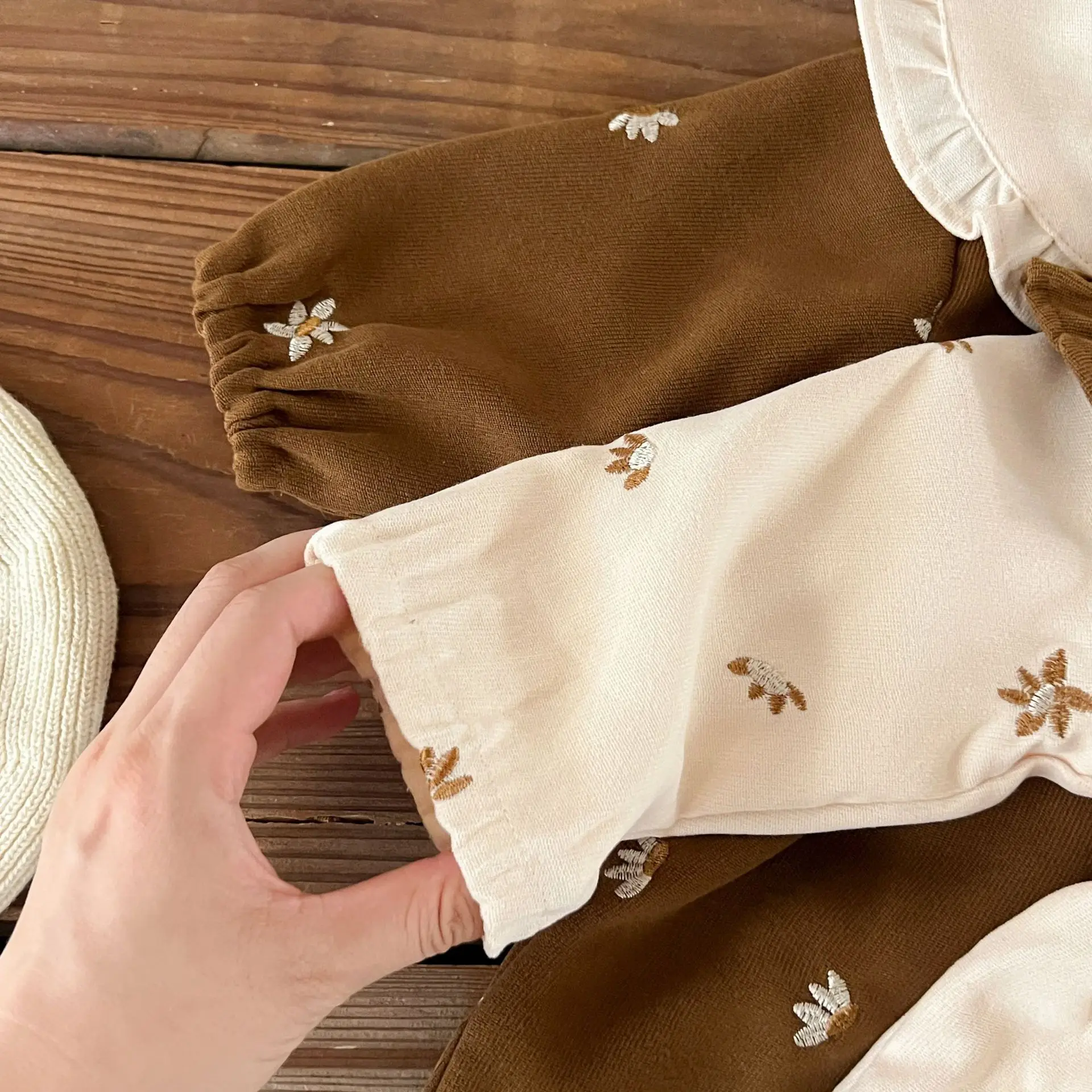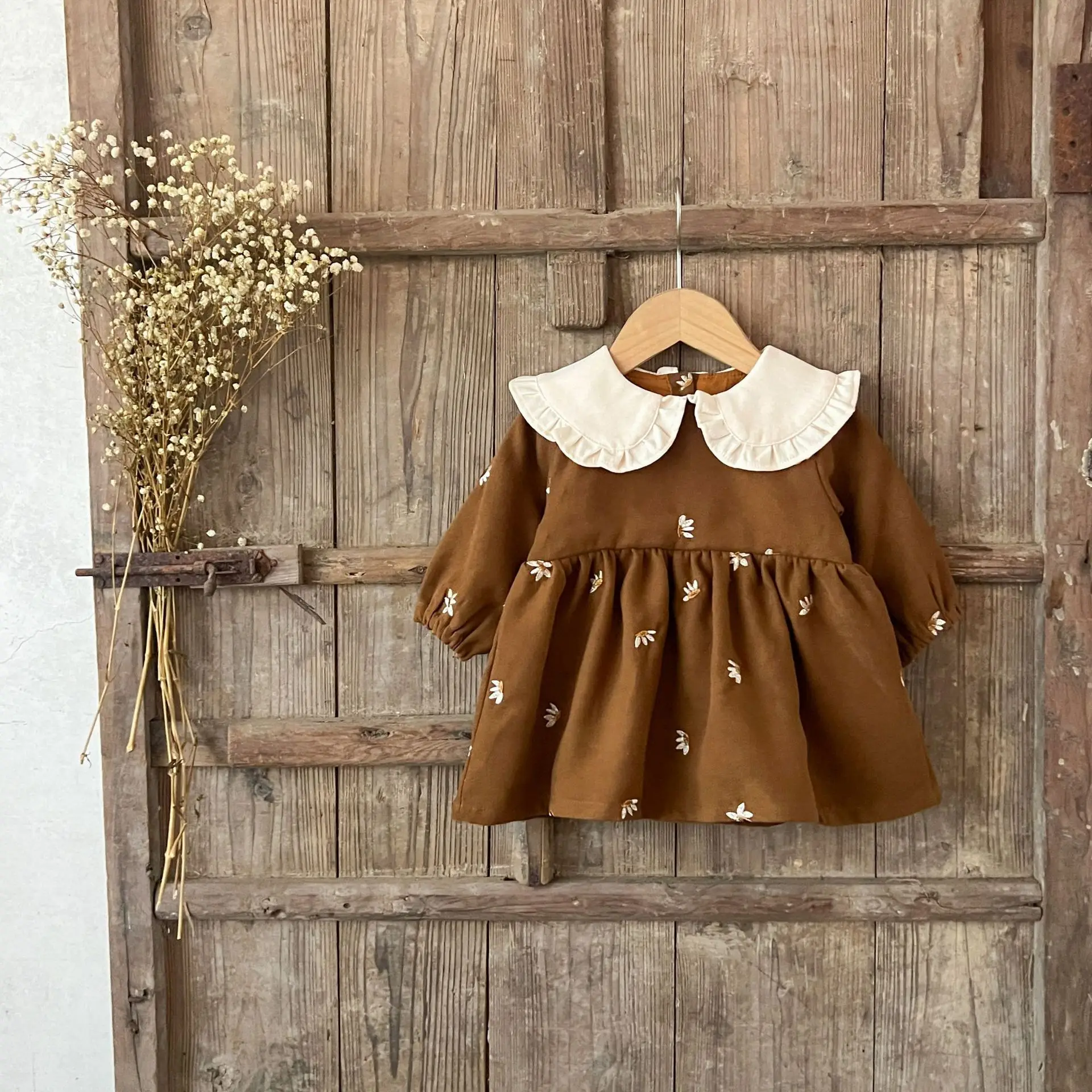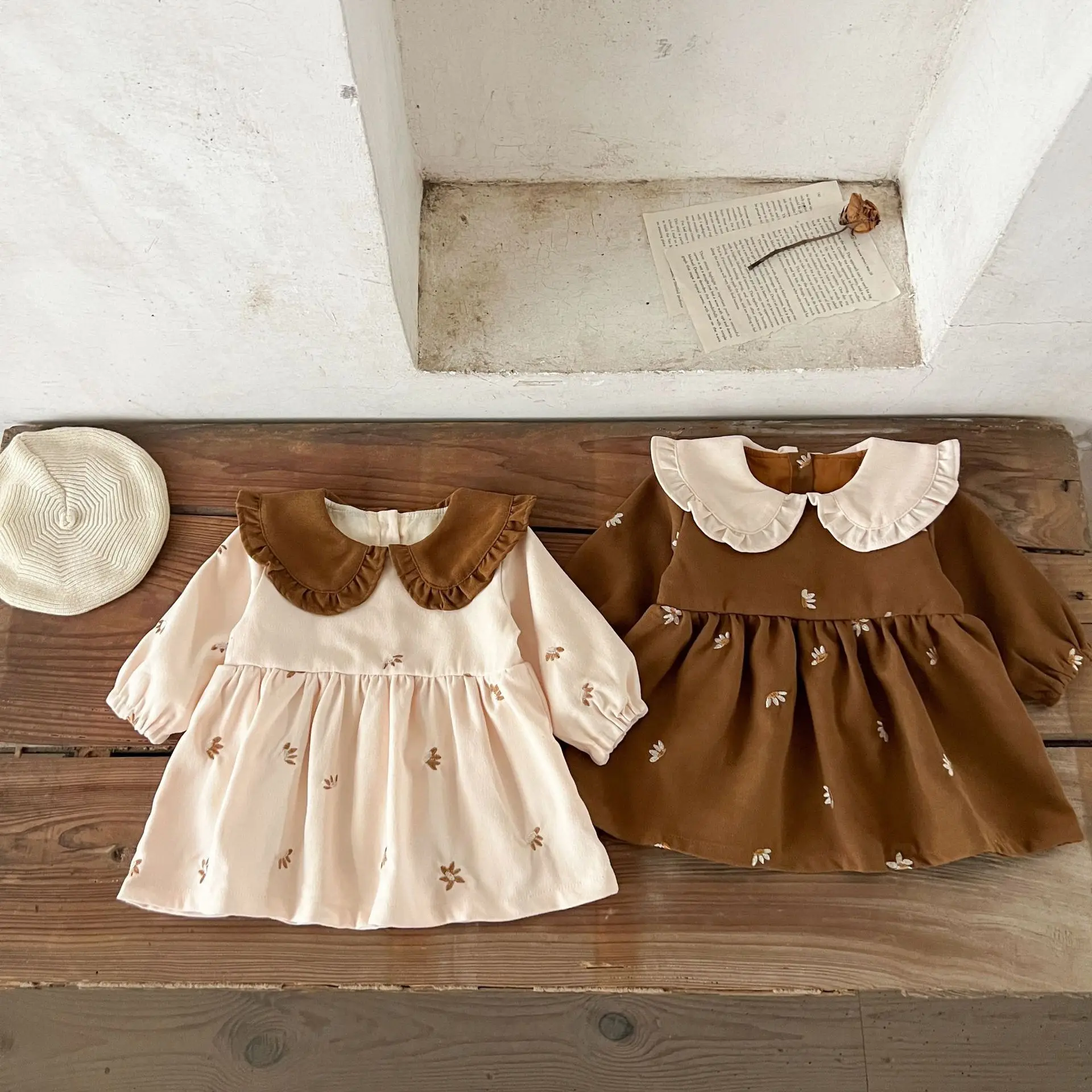 Ins Autumn Infant Baby Girl Dress Cotton Floral Print Long Sleeve Infant Girl Dress Contrast Turn Down Collar Toddler Girl Dress