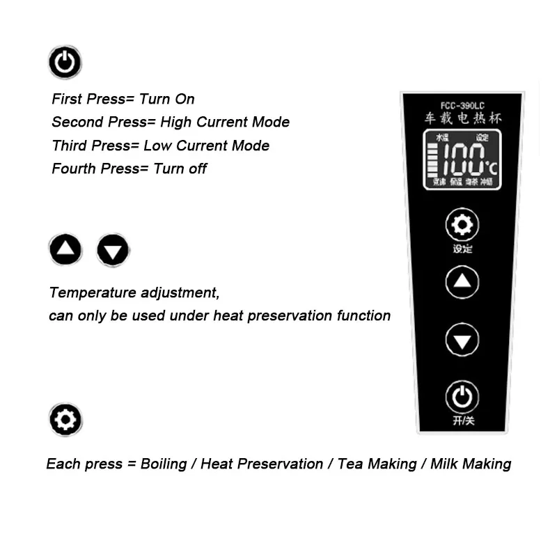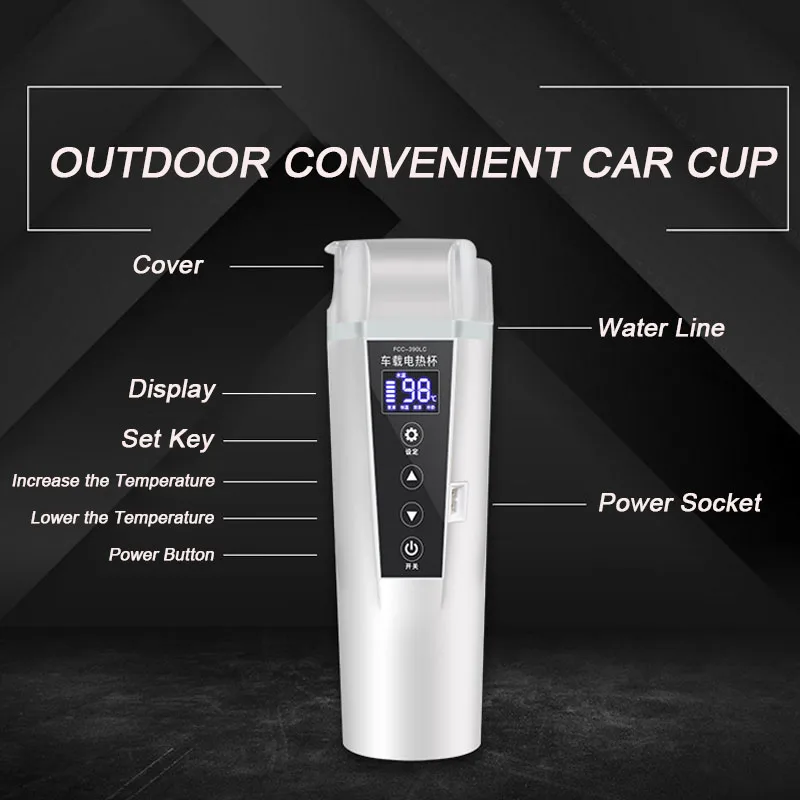 Intelligent Car Home Electric Kettle Thermos Bottle Tea Milk Temperature Adjustable 12V 24V 220V Travelling Water Heating Cup