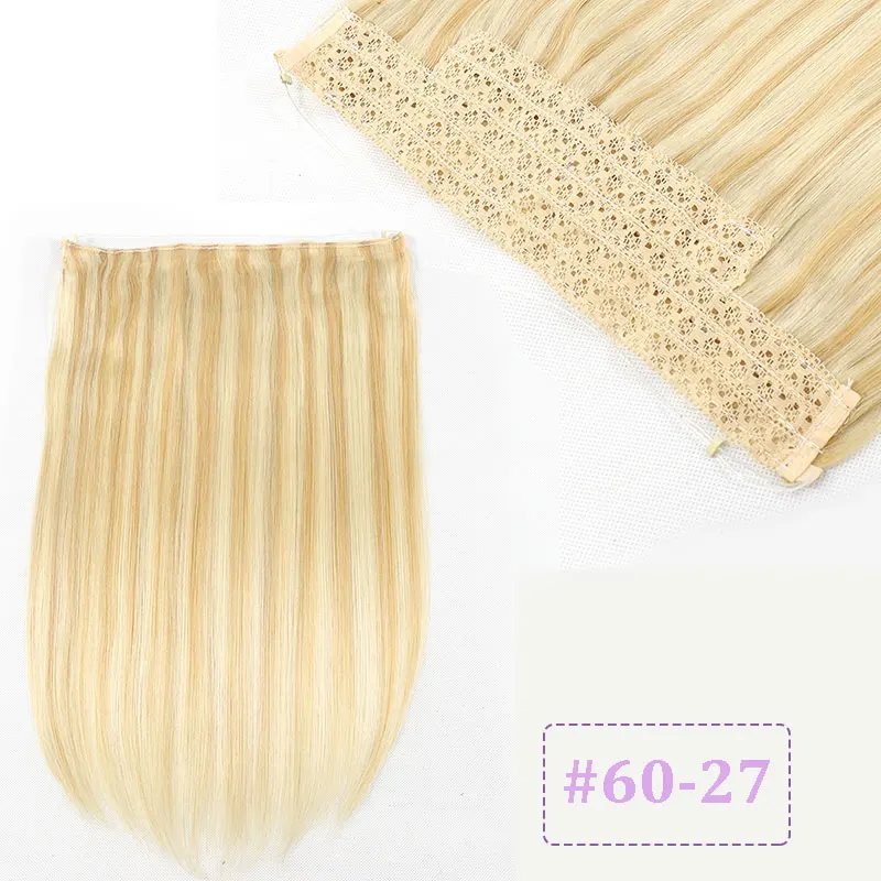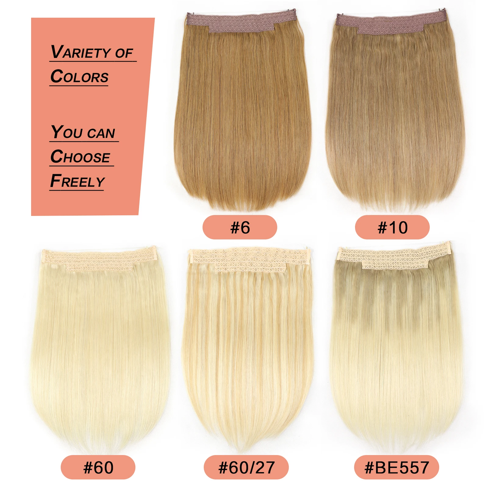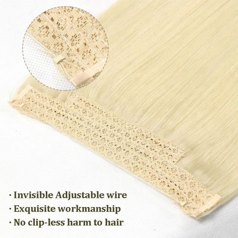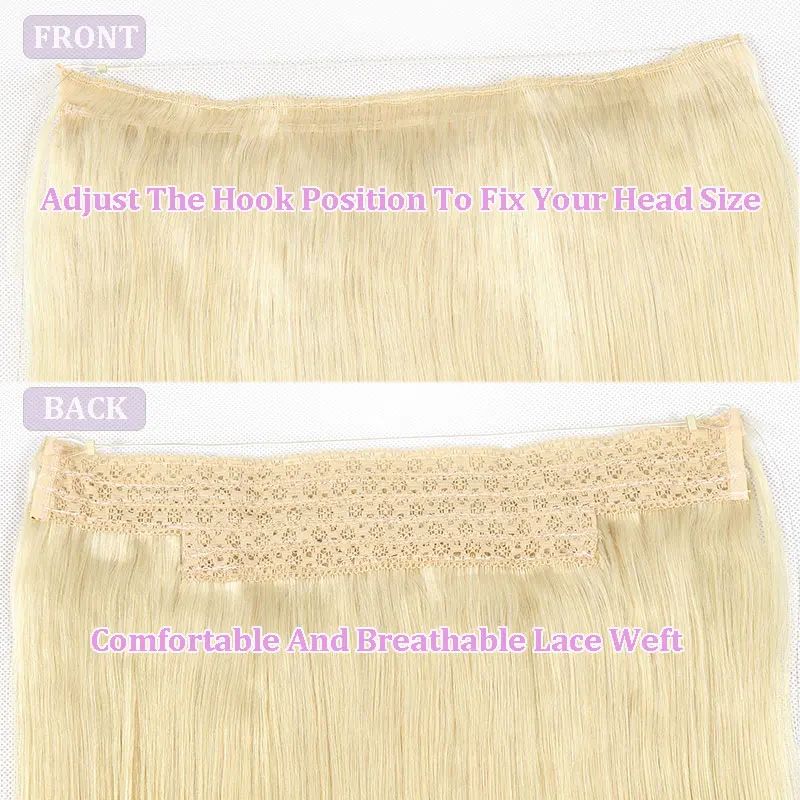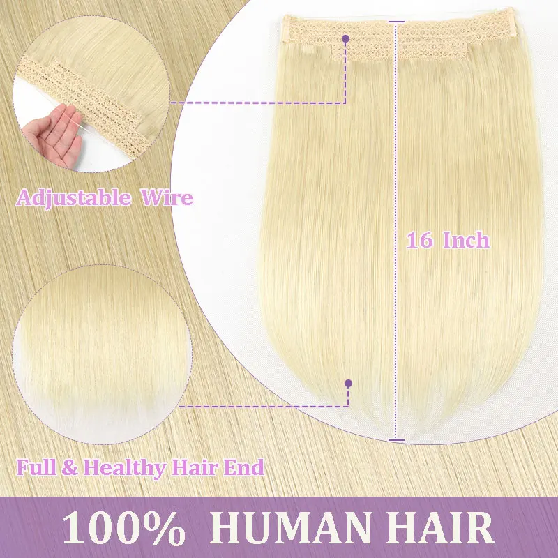 Invisible Wire Human Hair Extensions For Women Blonde Human Hair Adjustable Fish Line Hairpieces Wire Hair Extensions 16Inch
