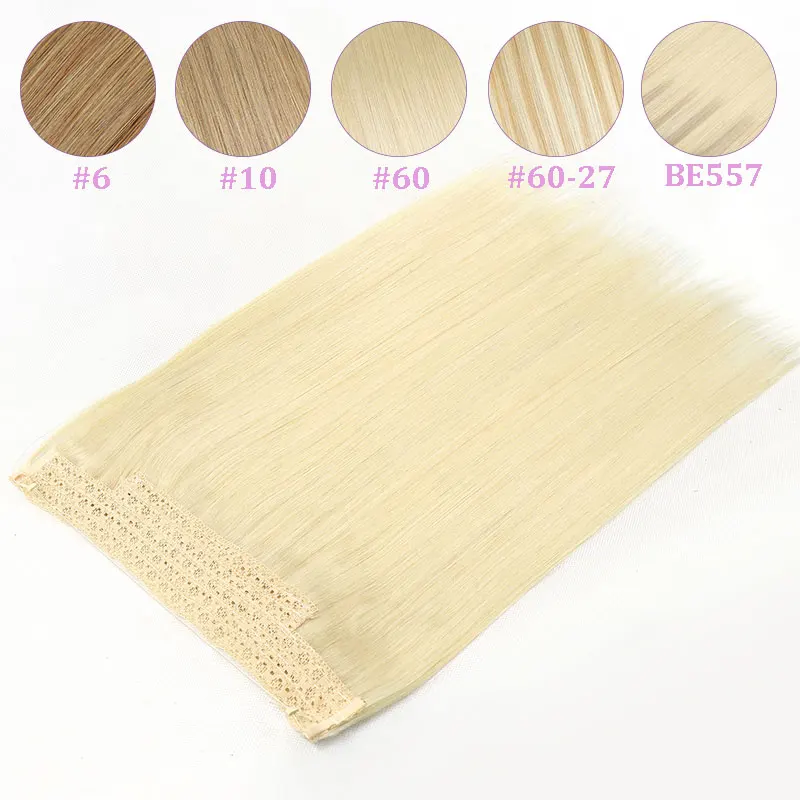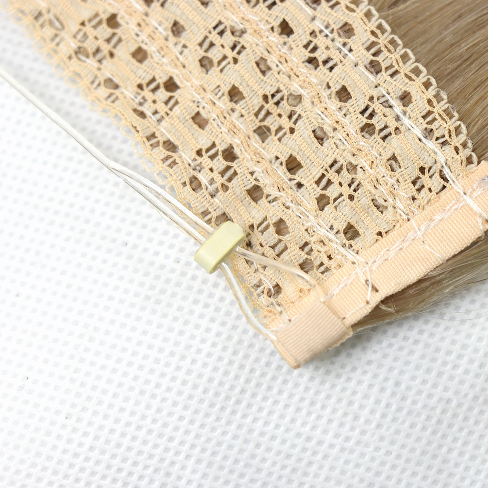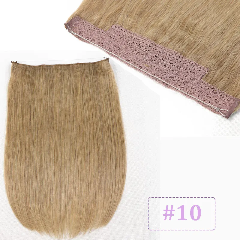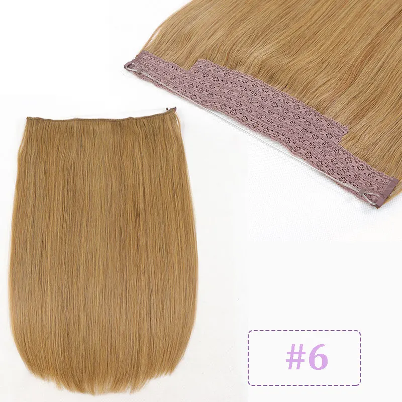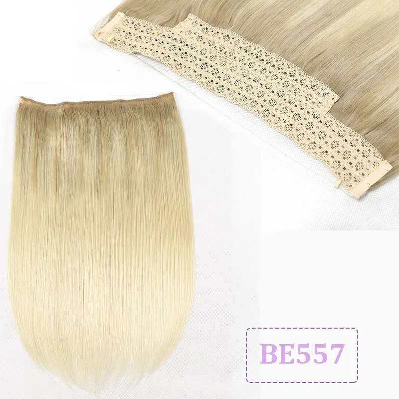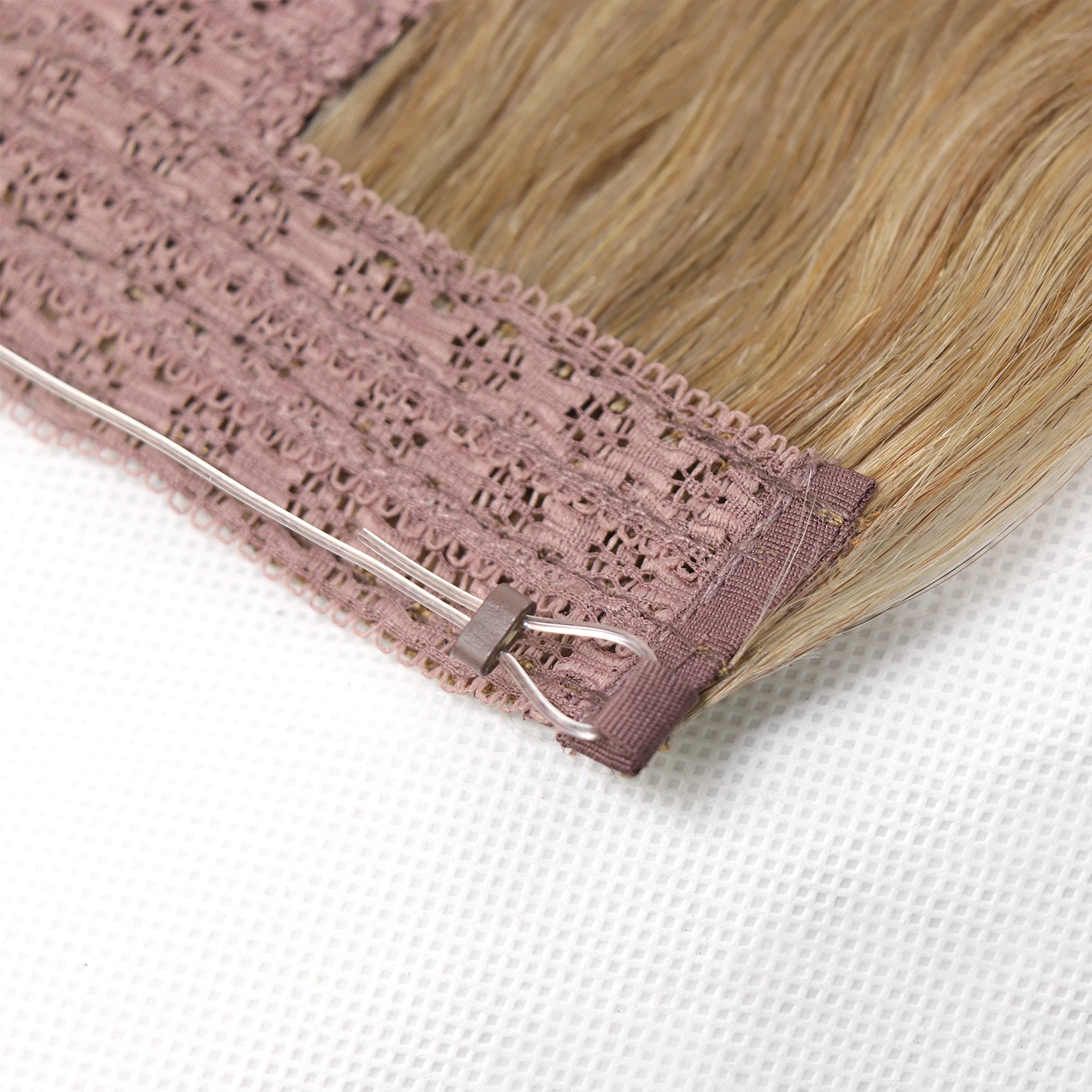 Invisible Wire Human Hair Extensions For Women Blonde Human Hair Adjustable Fish Line Hairpieces Wire Hair Extensions 16Inch