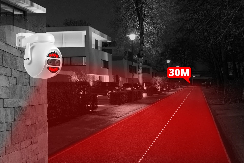 Three Night Vision Modes8Pcs Spot White light LED+8Pcs Array IR LEDs, 30M B&W Night Vision,20M Color Night vision