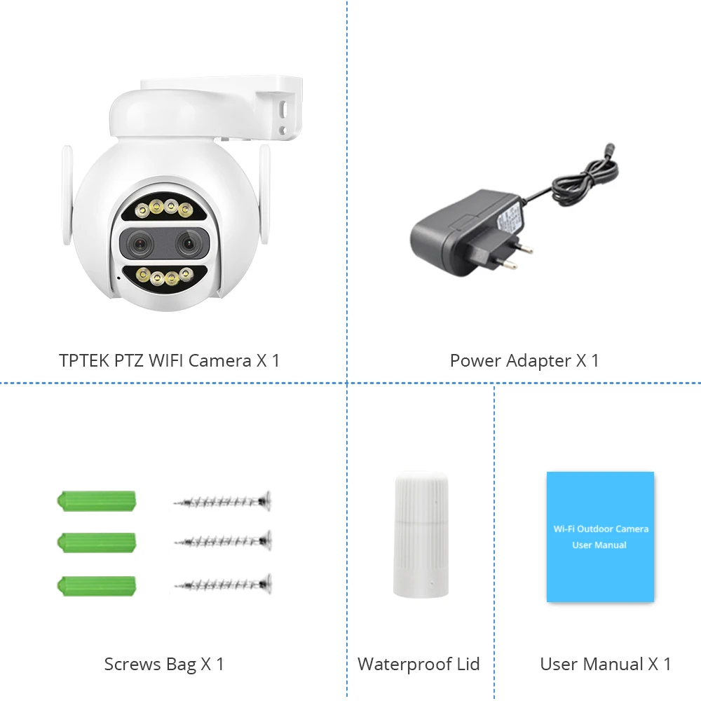 What’s in the boxPTZ WiFi Camera X 1, Power Adapter X 1,Mounting Base X 1, Mounting Screws X 4,