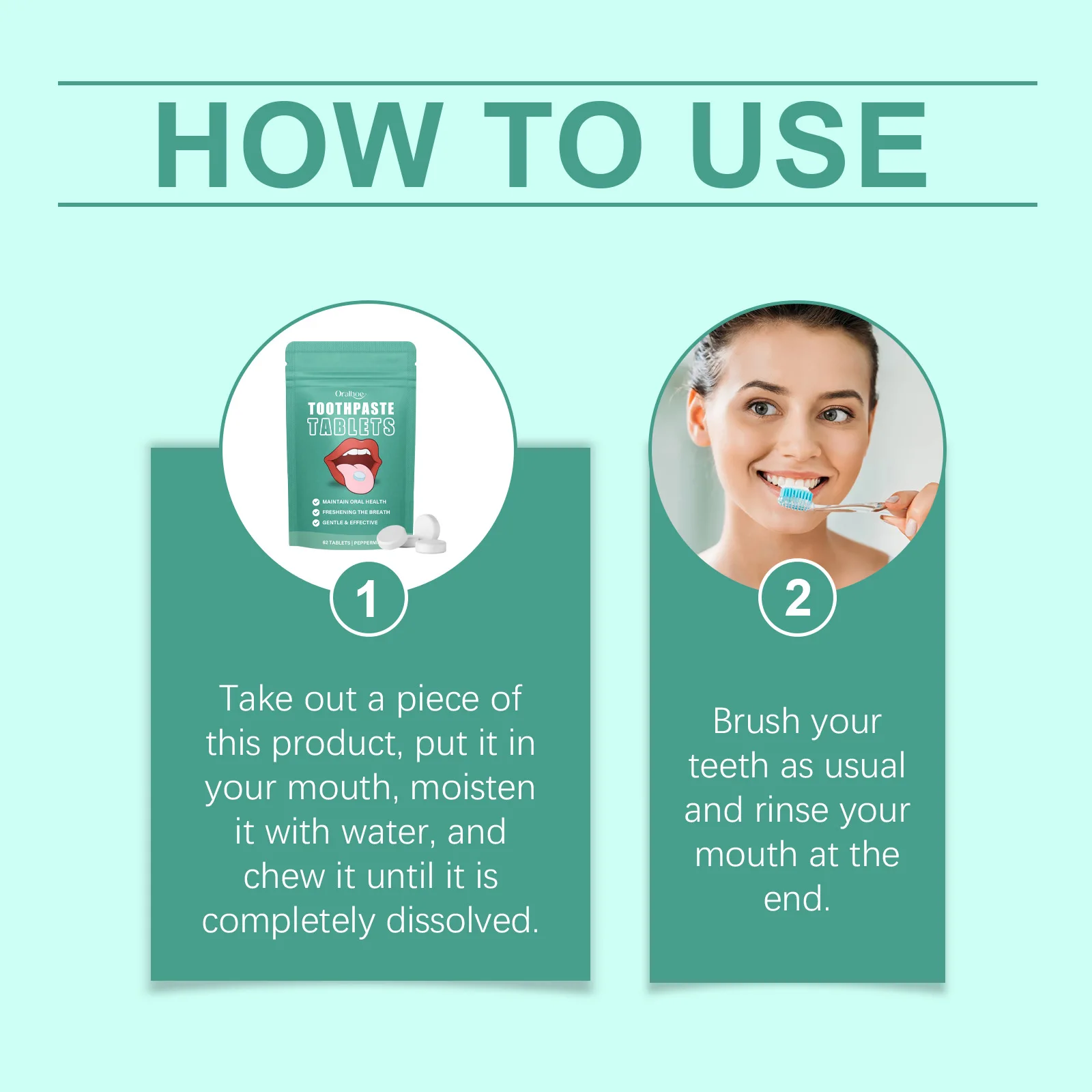 1.Take out a piece of this product,put it in your mouth, moisten it with water, and chew it until it is completely dissolved.