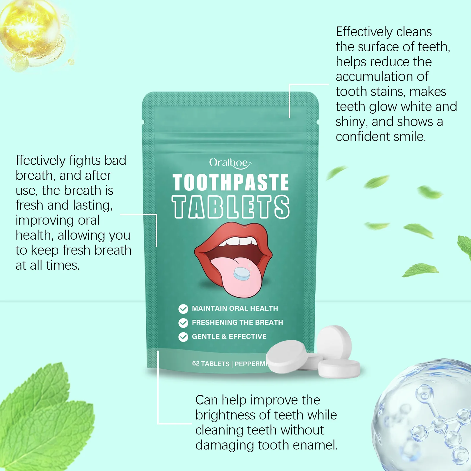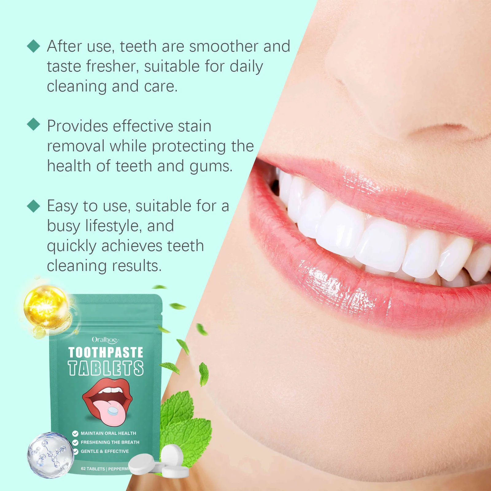 ●Item Type: Teeth W-hitening Toothpaste Tablets