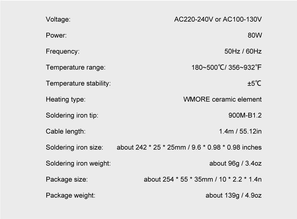 Soldering Iron Tips: 900M-B1.2 Wire Length: 1.4m / 55.12in
