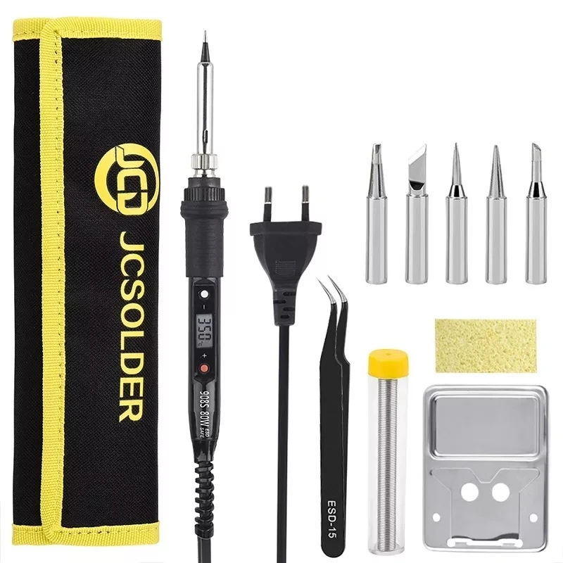 * This soldering iron is an 80W soldering tool that can work at 180C-480C. The temperature can be adjusted by 1C. It has European Union and American plugs to choose from.