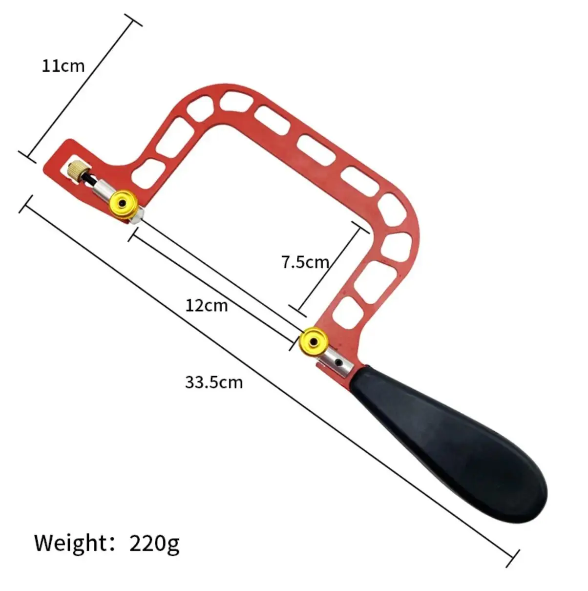 3. Wing Screws: The saw frame has a top and bottom wing screw for securing the saw blade firmly in the frame, and a blade length adjustment device to ensure proper blade tension.