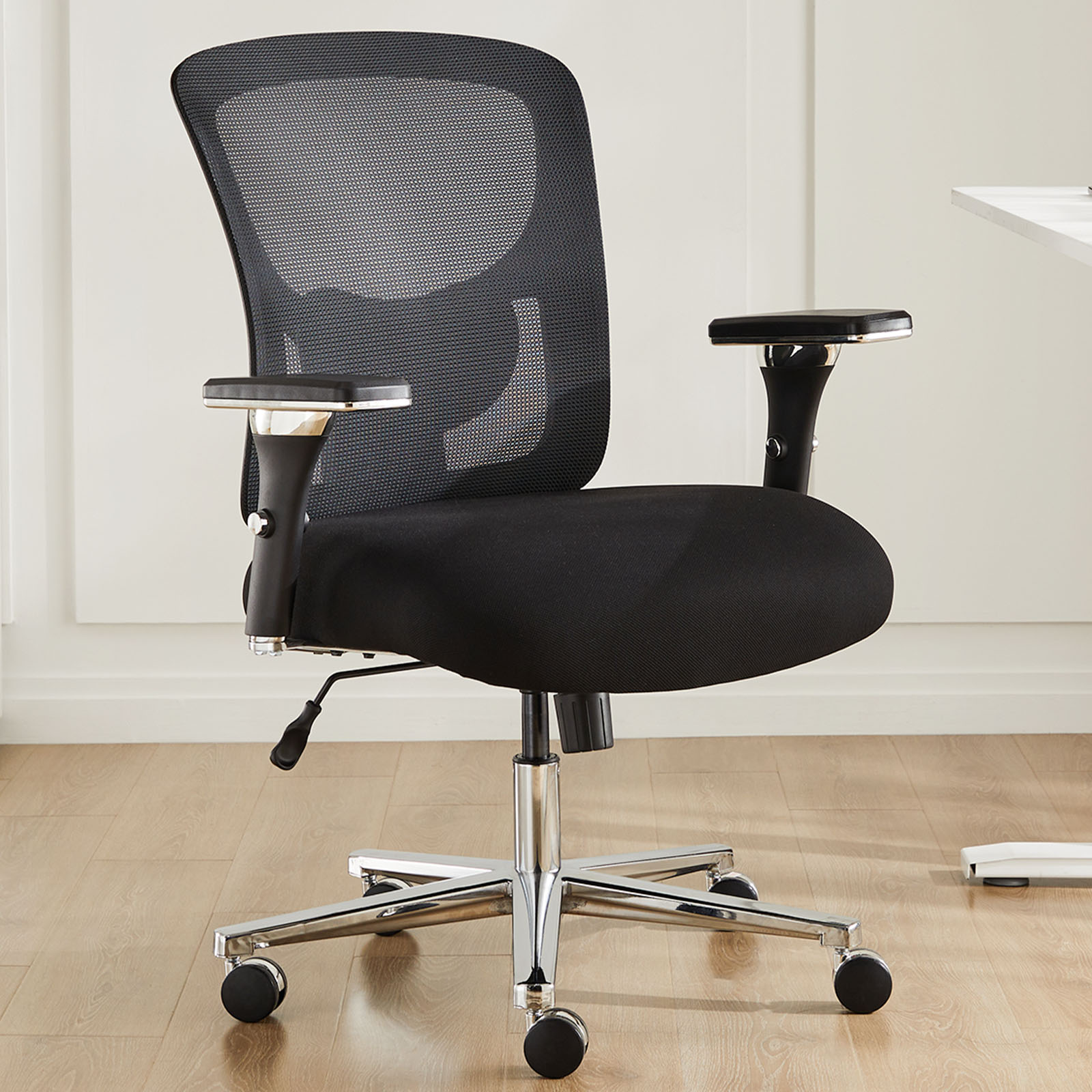 【COMFORTABLE MATERIALS】The surface of the big and tall office chair is designed with mesh fabric for good breathability; the thickened sponge cushion is designed with waterfall front seat edges, which eliminates pressure on the calves and promotes blood circulation