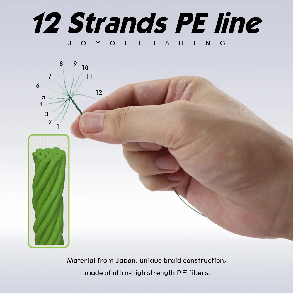 12 Strands PE line,material from Japan,Unique Braid Construction,Made of ultra-high strength PE fibers