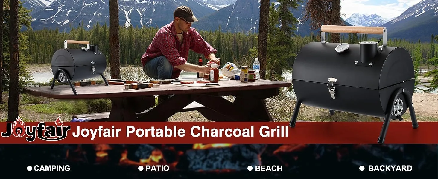 - 【SUPER WORTH】 Joyfair Portable Charcoal Grill is adopt upgraded powder spraying technology, Reduce the risk of rusting, cracking, and peeling while withstanding high grilling temperatures reaches 750-800℉, Extra thick steel provides sturdy construction without deformation, Last for a long time use, Bring you a reassuring bbq time