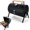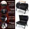 - 【HEAVY DUTY】 TRIANGULAR STRUCTRUE – keeps standing stably on different grounds, Greatly enhances the stability of the whole grill, WOODEN HANDLE – Anti-scald for easily open and move, The upgraded buckles can be opened and closed smoothly, Firm enough to ensure will not popping open when carrying, 2 PULL RODS – Hold the lid in place to keep out the wind