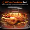 360° airflow circulation creates a crispy outside and tender inside taste, which reduces fat by 93% and cut off cooking time compared to traditional deep-frying methods.