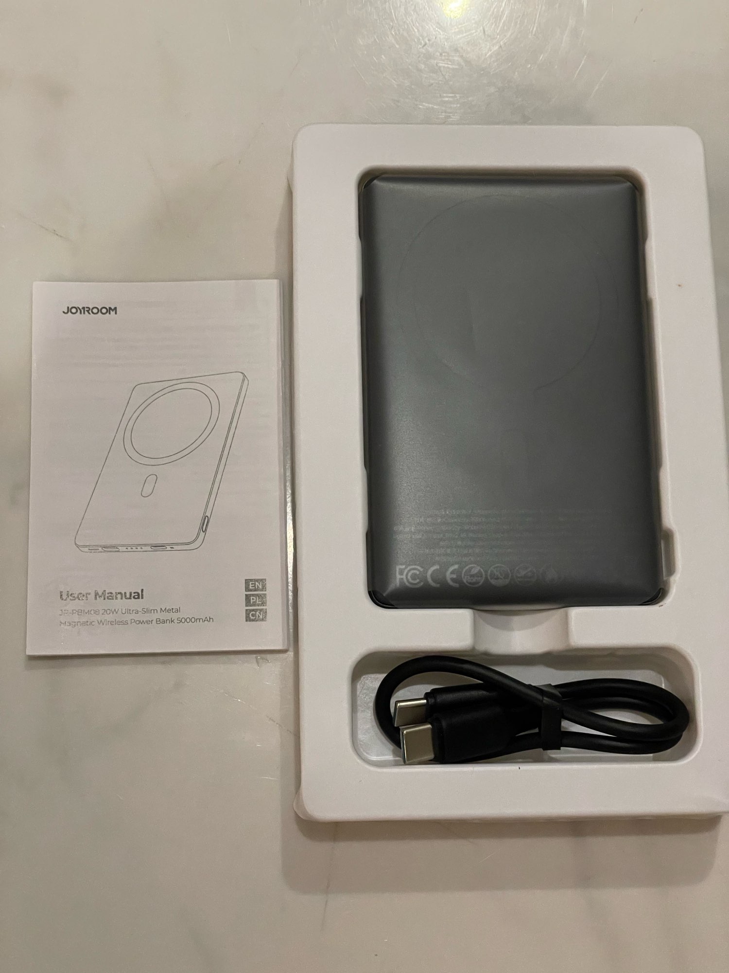 The goods are safe and well received. When I opened it, the battery design is also neat and very advanced, so it's stiff. And above all, it was good because the product was light. The components were also good because of the velvet pockets and charger that can be stored separately under the battery! Above all, 20W fast wireless charging is satisfactory!