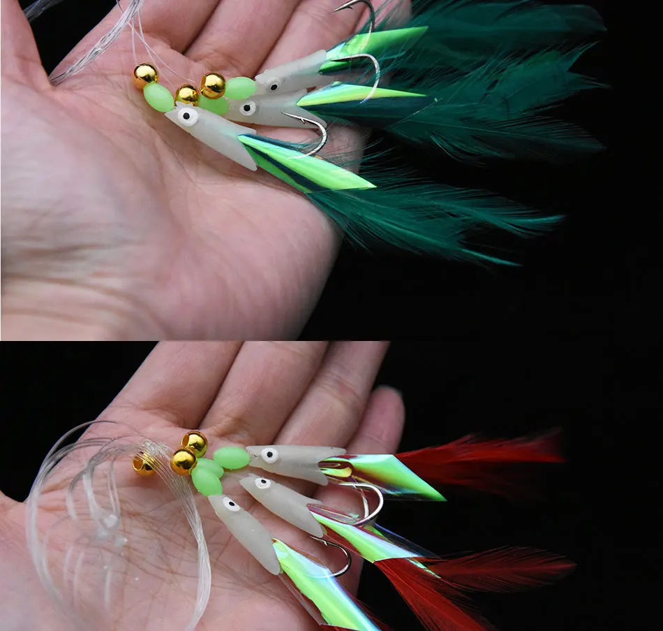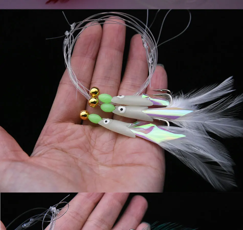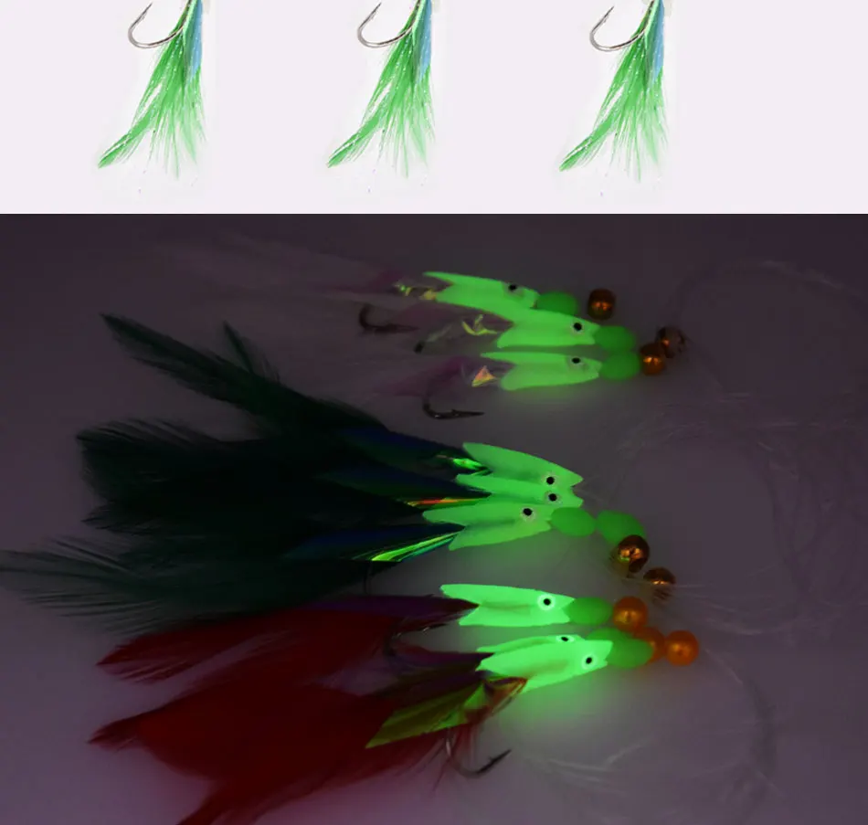 JYJ 3 hook/Set Luminous fish head Fishing Lure Single Hook Tack Bait Jigs Worm Fishing sabiki string Hooks