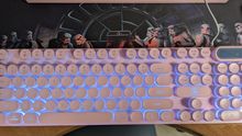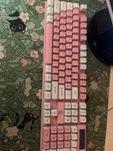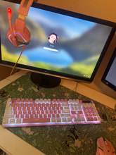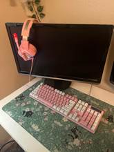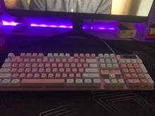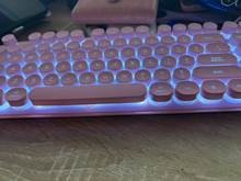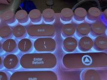 This keyboard is absolutely adorable. I love it so much. It’s really cute. It makes a beautiful sound and it glows. You can have the glow feature on or off. I also really like that. You can take the keys off if you need to clean it as well as the beautiful color came really really fast good condition definitely I recommend recommended it if you play video games or you work with a monitor since these are very useful keys. 🩷🩷🩷🙏🙏🙏 absolutely recommend perfectly priced!!!!!
