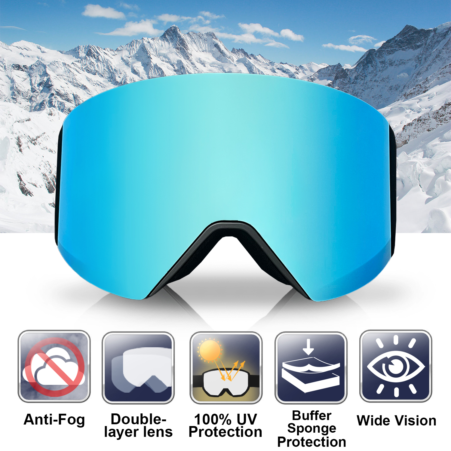 Ski Goggles  – Anti fog, UV400 Protection Snow Goggles for Men & Women