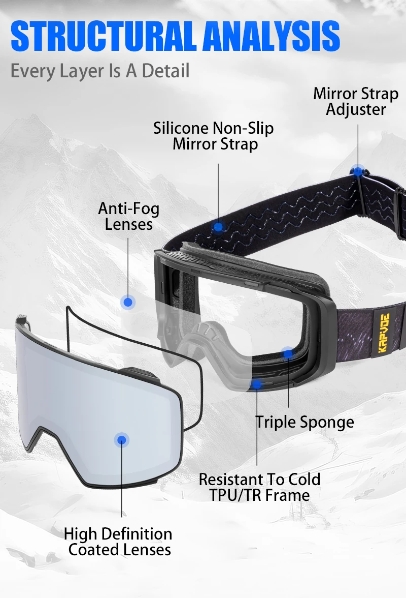KAPVOE Magnetic Attraction Lens Outdoor Sports Photochromic Ski Goggles Protection Ski Snowboard Anti-Slip Strap Snow Goggles