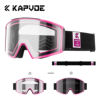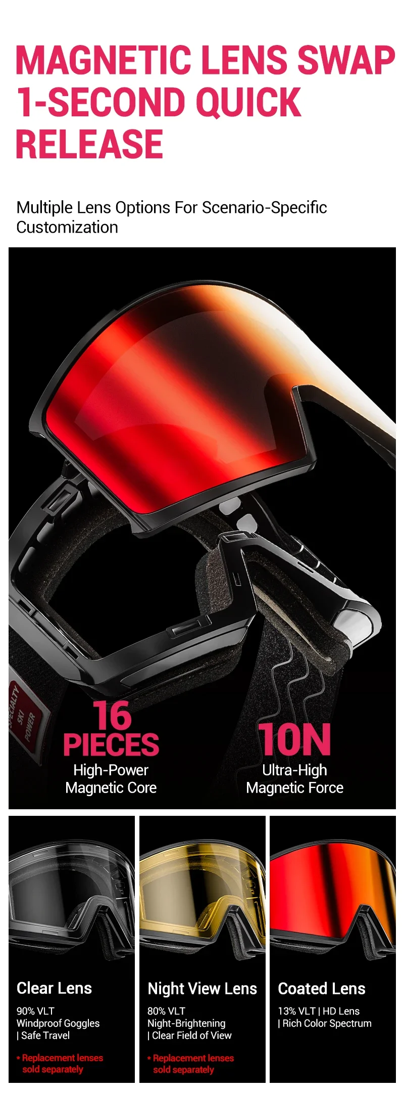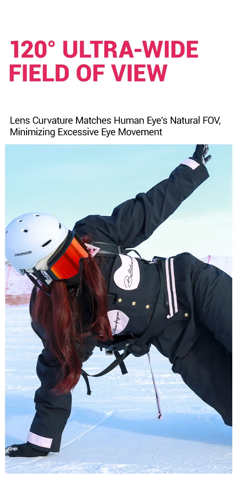 ⛷️Wider field of view and clear vision without fogging: KAPVOE magnetic ski goggles feature large cylindrical magnetic lenses that provide a 180° wider field of view and clear mirror images. The double lens design, UV400 protection and anti-fog coatings (inside and outside) ensure that your eyes are protected from harmful UV rays while skiing and you have a clear, fog-free vision.