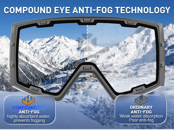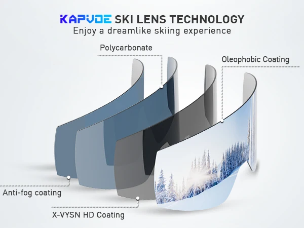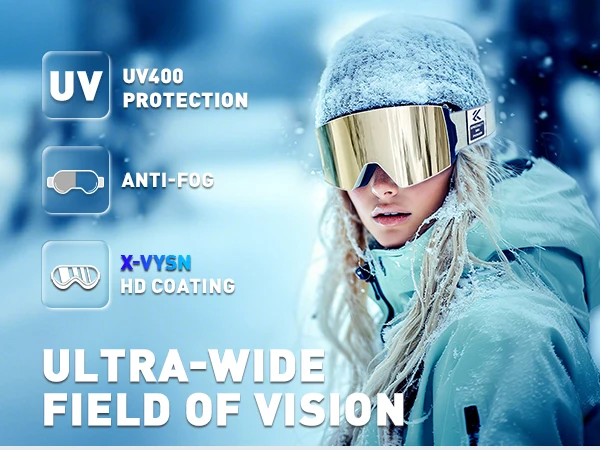 ⛷️Wider field of view and clear vision without fogging: KAPVOE magnetic ski goggles feature large cylindrical magnetic lenses that provide a 180° wider field of view and clear mirror images. The double lens design, UV400 protection and anti-fog coatings (inside and outside) ensure that your eyes are protected from harmful UV rays while skiing and you have a clear, fog-free vision.