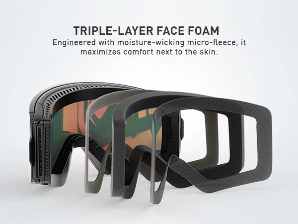 ⛷️Comfortable Foam and Ventilation System: KAPVOE single lens ski goggles use thick three-layer foam material that fits snugly around the eye sockets and will not cause pressure or irritation even if worn for a long time. With warming, windproof and moisture-absorbing function, as well as an excellent ventilation system that ensures smooth air circulation to prevent fogging and maintain comfort.