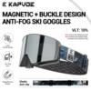⛷️Wider field of view and clear vision without fogging: KAPVOE magnetic ski goggles feature large cylindrical magnetic lenses that provide a 180° wider field of view and clear mirror images. The double lens design, UV400 protection and anti-fog coatings (inside and outside) ensure that your eyes are protected from harmful UV rays while skiing and you have a clear, fog-free vision.