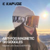 【Superior Anti-fogging】KAPVOE ski goggles focus on anti-fogging as a core feature. They use the unique compound eye anti-fog technology. The inner anti-fog layer, like a moisture-absorbing “sponge”, locks moisture effectively to prevent fogging from the root. Along with the frame’s honeycomb vent holes promoting air circulation and reducing condensation, you can clearly see ski slope details and enjoy skiing in any environment.