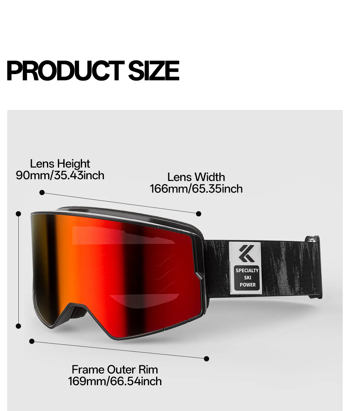 【OTG Design】The KAPVOE ski goggles with OTG design have wide panoramic lenses that leave enough space. They’re compatible with glasses up to 145mm in length and 50mm in height, fitting most prescription glasses. So you can have clear vision while wearing glasses and skiing, without worrying about compatibility.