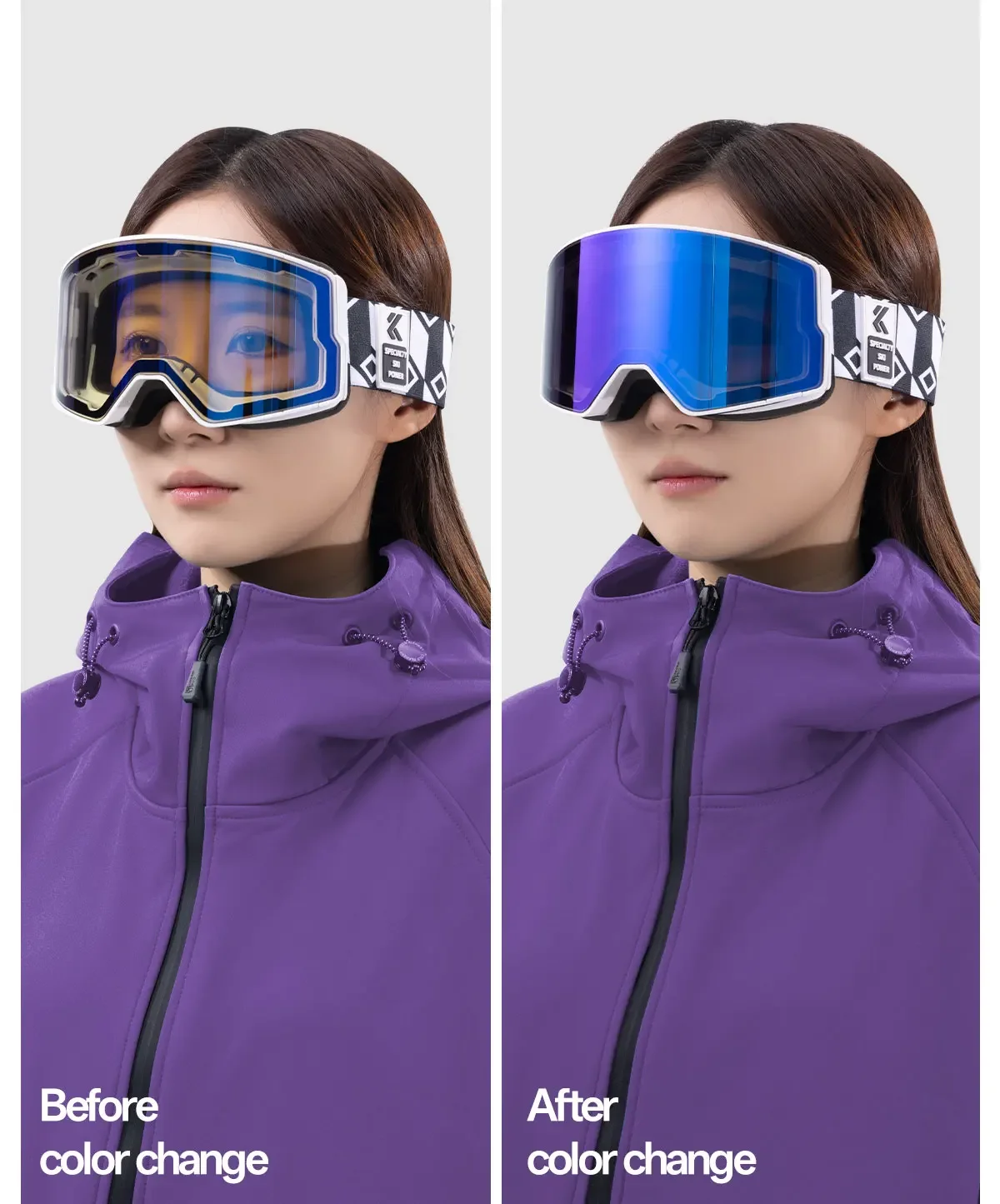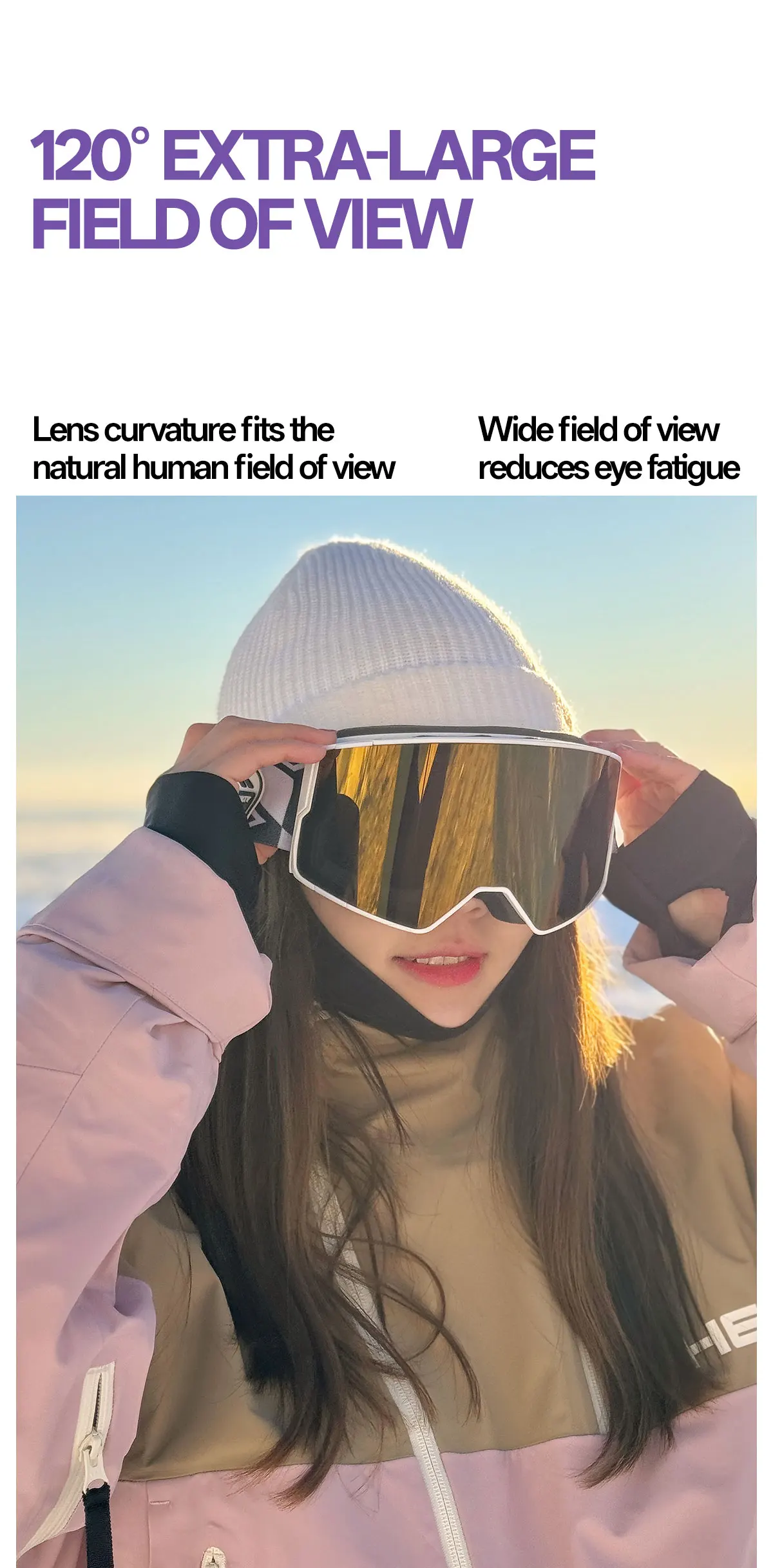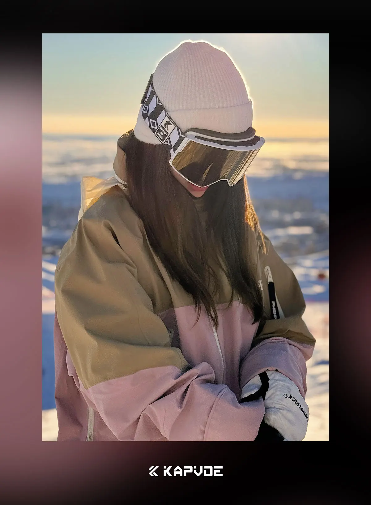 【Superior Anti-fogging】KAPVOE ski goggles focus on anti-fogging as a core feature. They use the unique compound eye anti-fog technology. The inner anti-fog layer, like a moisture-absorbing “sponge”, locks moisture effectively to prevent fogging from the root. Along with the frame’s honeycomb vent holes promoting air circulation and reducing condensation, you can clearly see ski slope details and enjoy skiing in any environment.