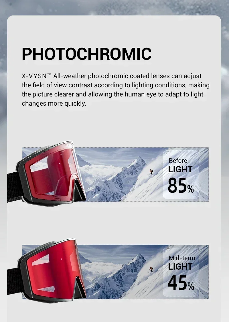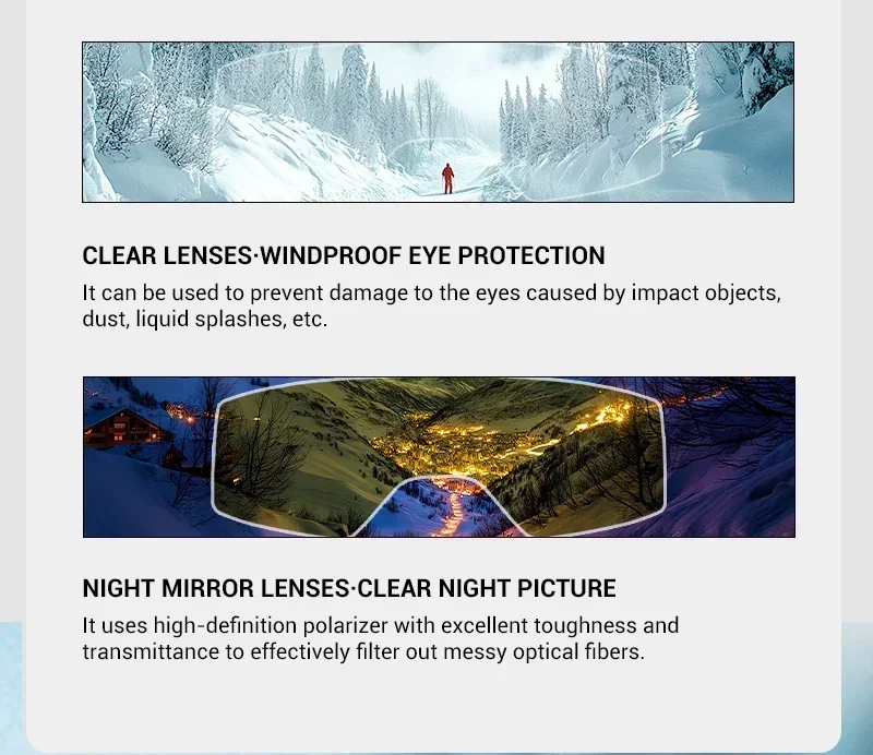 【Muti-Occasions】 Our snow goggles adapt to changing conditions and provide a superior skiing experience. They are perfect for skiing, skiing, snowboarding, ice skating, rock climbing, motorcycling/mountain riding, aerial driving, bungee jumping and more.