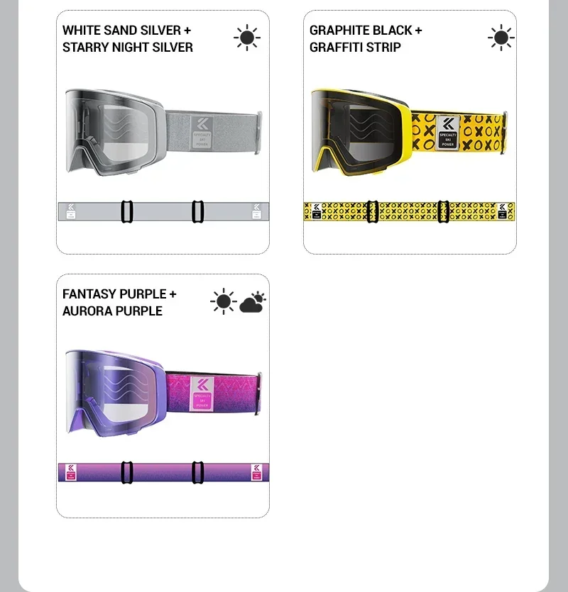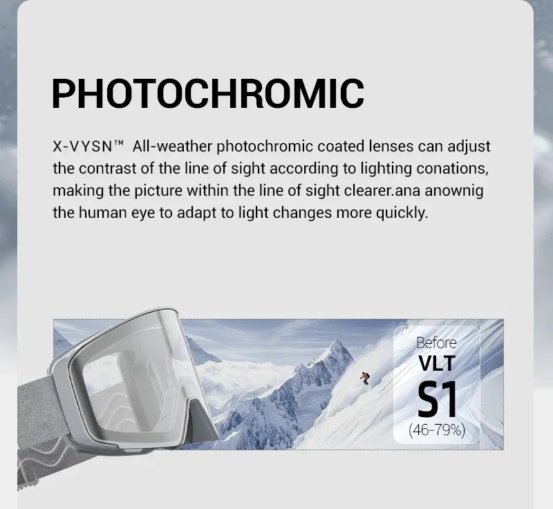 ⛷️Photochromic lenses: When exposed to UV sunlight outdoors, the lenses will change color according to the intensity of the UV rays. The stronger the UV rays, the darker the lens color will become.