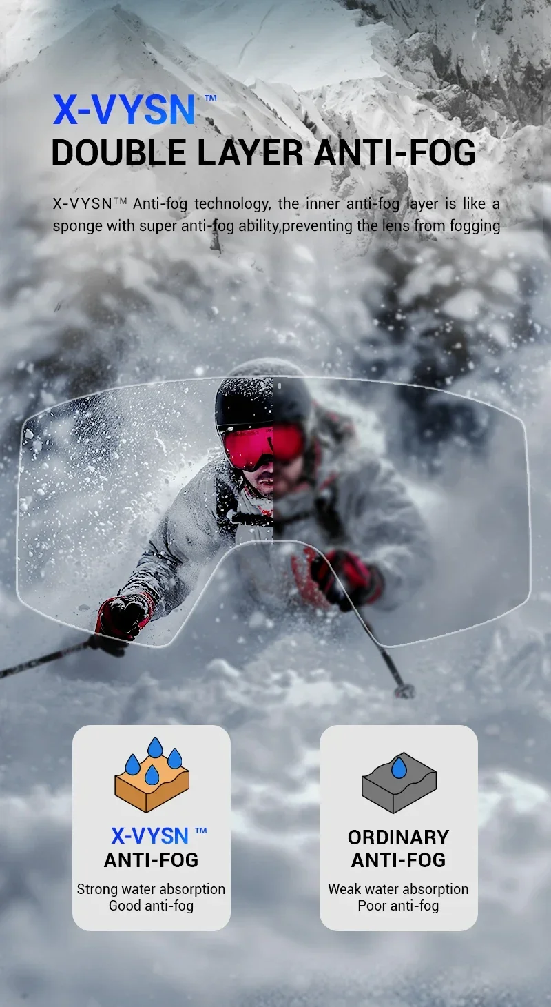 ⛷️Wider field of view and clear vision without fogging: KAPVOE magnetic ski goggles feature large cylindrical magnetic lenses that provide a 180° wider field of view and clear mirror images. The double lens design, UV400 protection and anti-fog coatings (inside and outside) ensure that your eyes are protected from harmful UV rays while skiing and you have a clear, fog-free vision.