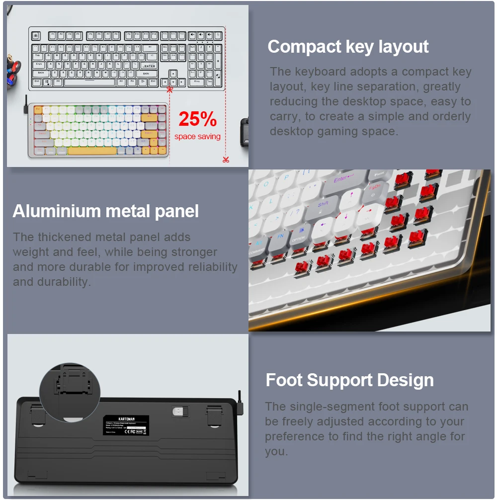 Hot-Swappable Bule Switches: linear and soft key travel makes every click easy to register.Hot-swappable with other switches.Made to last with switches rated for 50 million keypresses.