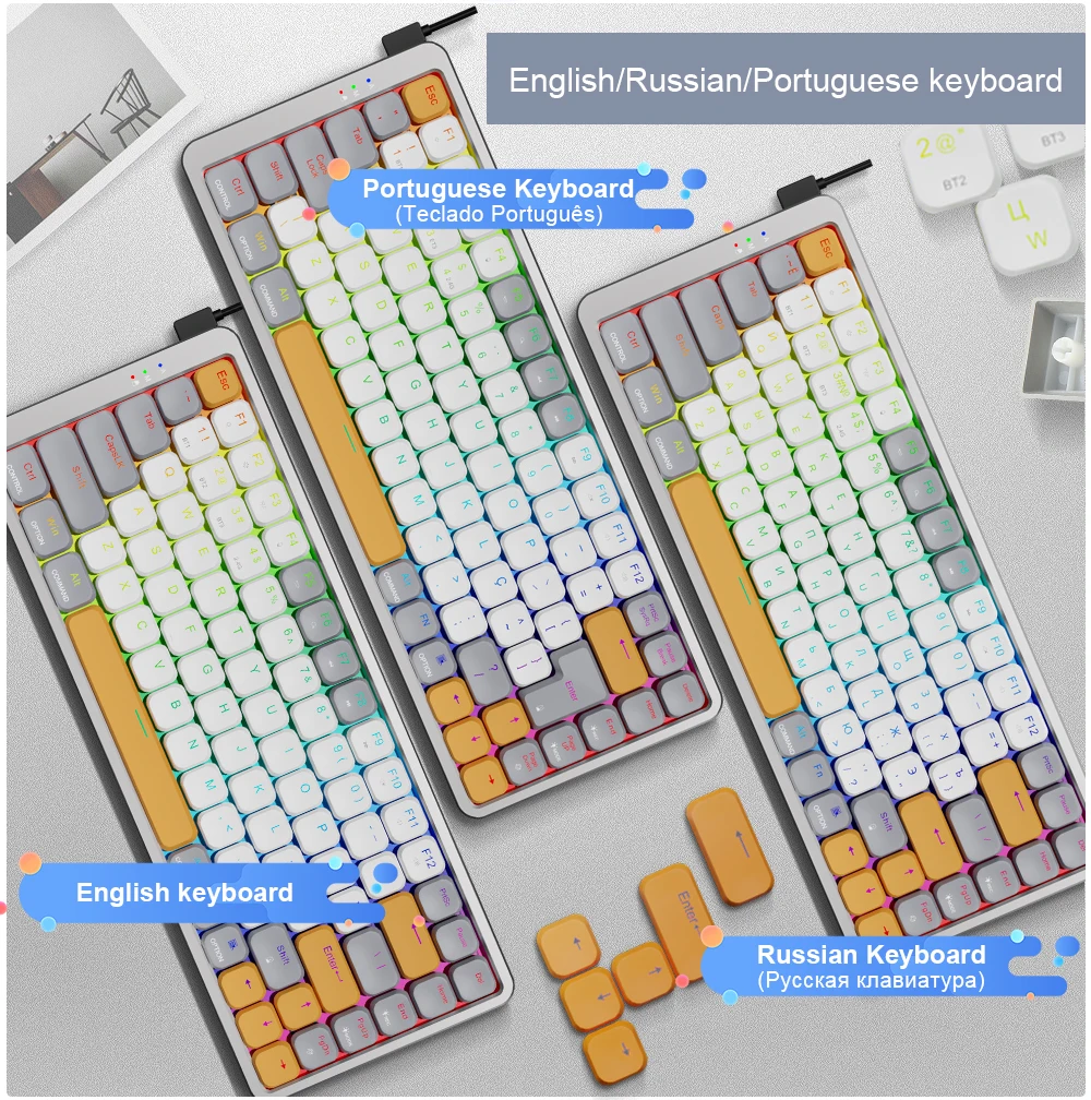【RGB Lighting Effects】: It has 21 backlight modes and 4 side light modes. The innovative left LED light shows caps lock and connection mode, while the right LED light indicates battery power and system mode. You can choose dynamic or static light mode according to your preferences. With Windows software, you can even customize unlimited lighting effects.
