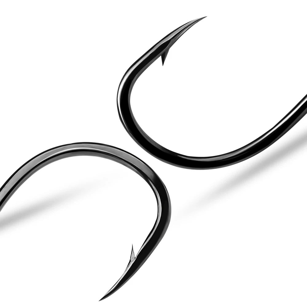 KATYUSHA 20PCS J Hooks 1/0-2/0-3/0-4/0-5/0# Barbed Octopus Fishing Hook High Carbon Steel Offset Fishhooks Black Color Pesca