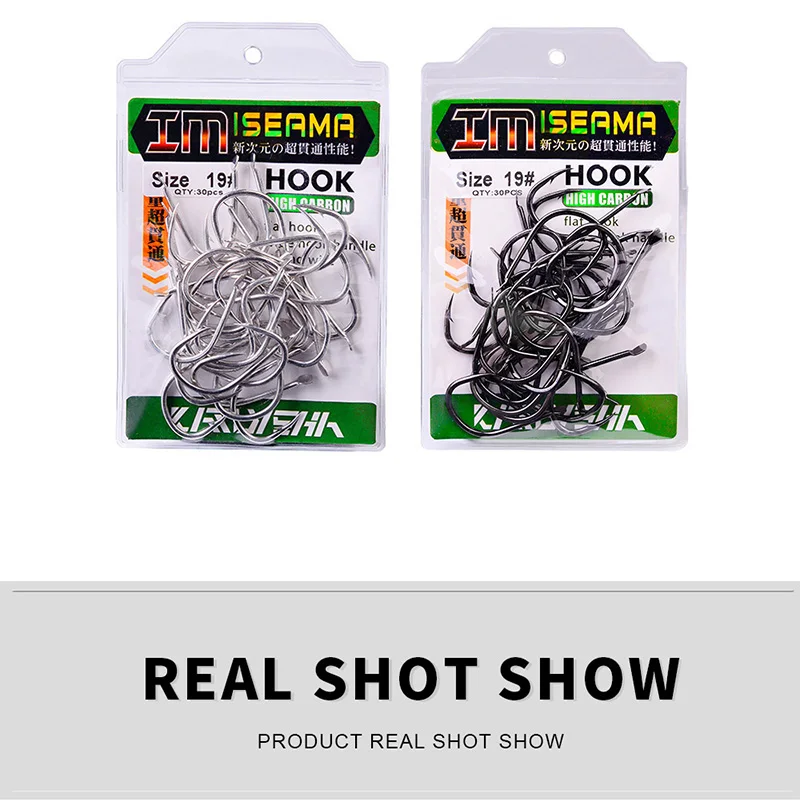 KATYUSHA 30Pcs High Carbon Steel Offset Barbed Fishhooks 11#-20# Flat Carp Fishing Hooks Single Jigging Hooks Accessories Tackle