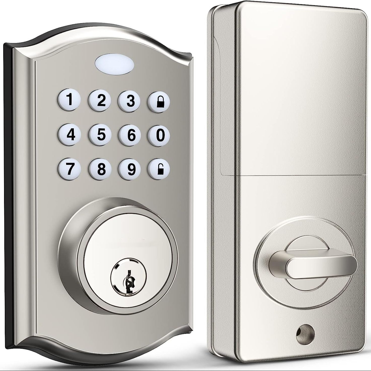Electronic single cylinder keyboard door lock with customized keyless entry. The optional mechanical keyed override lock can be used as a backup. The door lock can enable up to 50 different user code and main code functions to optimize security. When your arm is full of groceries, it can be easily unlocked.