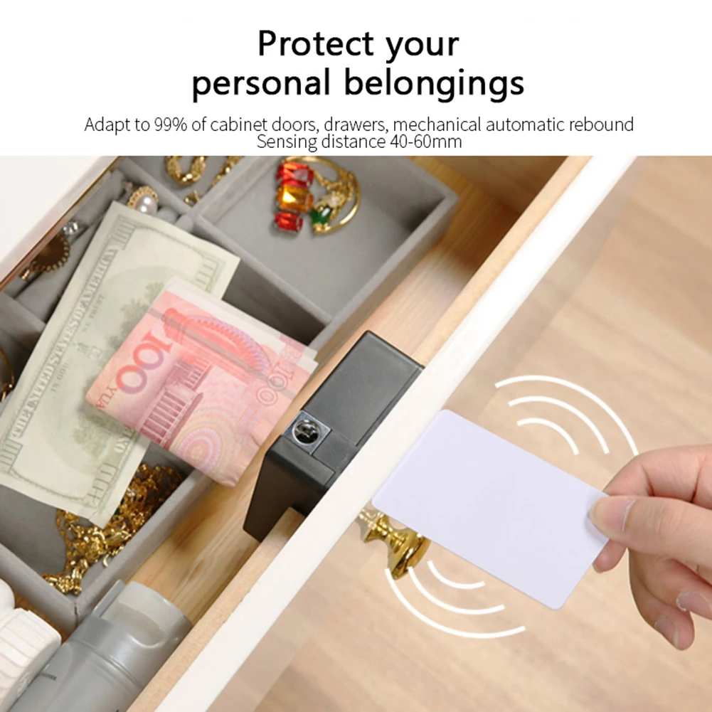 Swipe to unlock IC induction swipe to unlock, remote sensing. Adapt to 99% of cabinet doors, drawers, mechanical automatic rebound, sensing distance 40-60mm.
