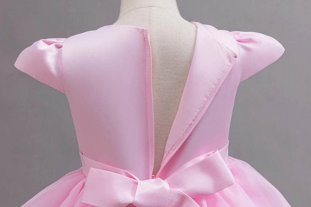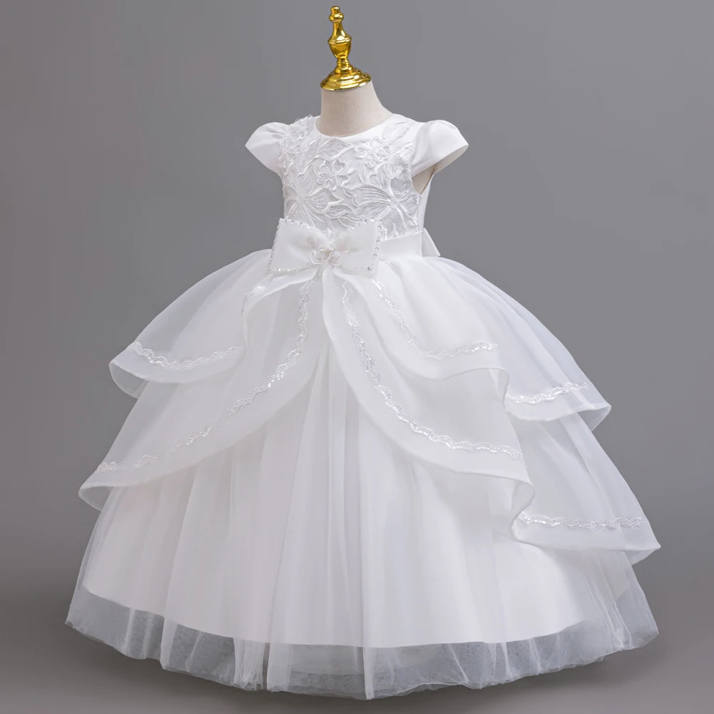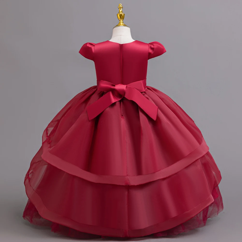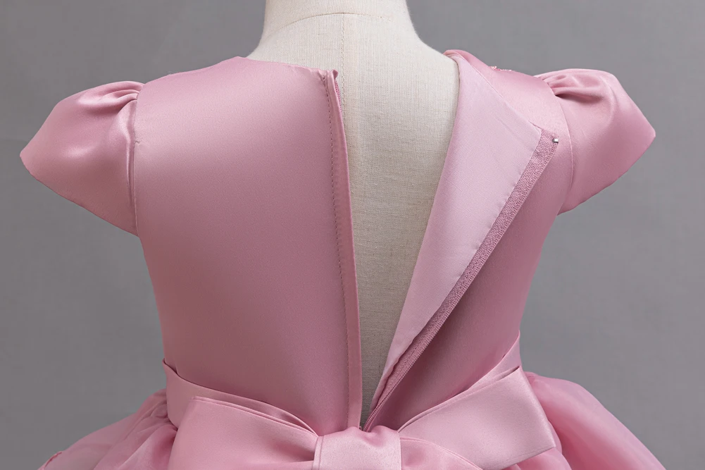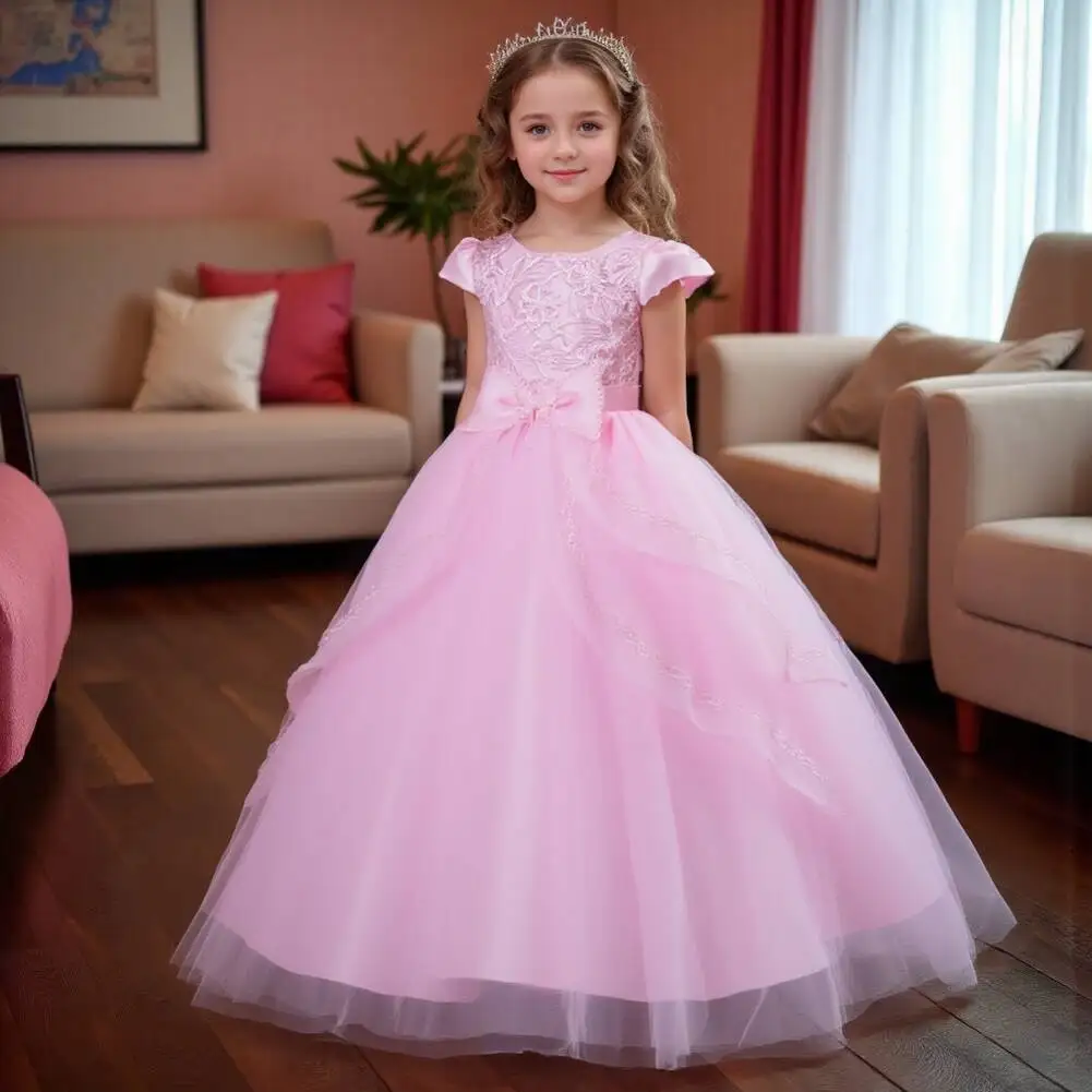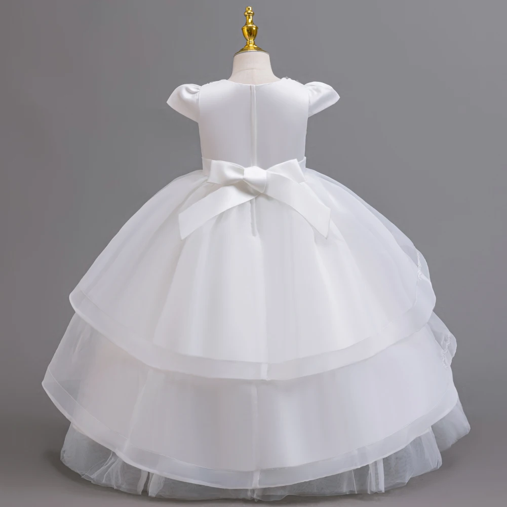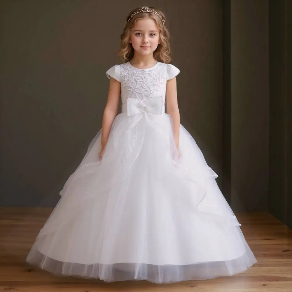 Kids Princess Dress With Bow Puffy Tulle For Advanced Piano Performance Evening Dinner Wedding Hostess Formal Party Outfit