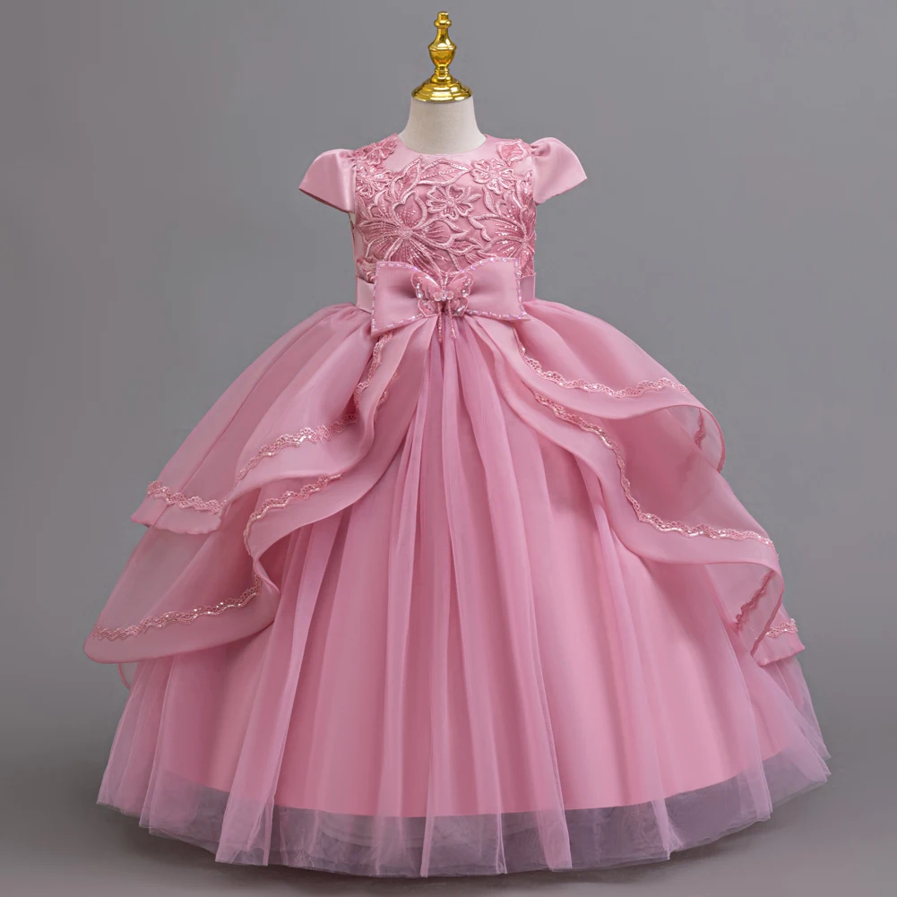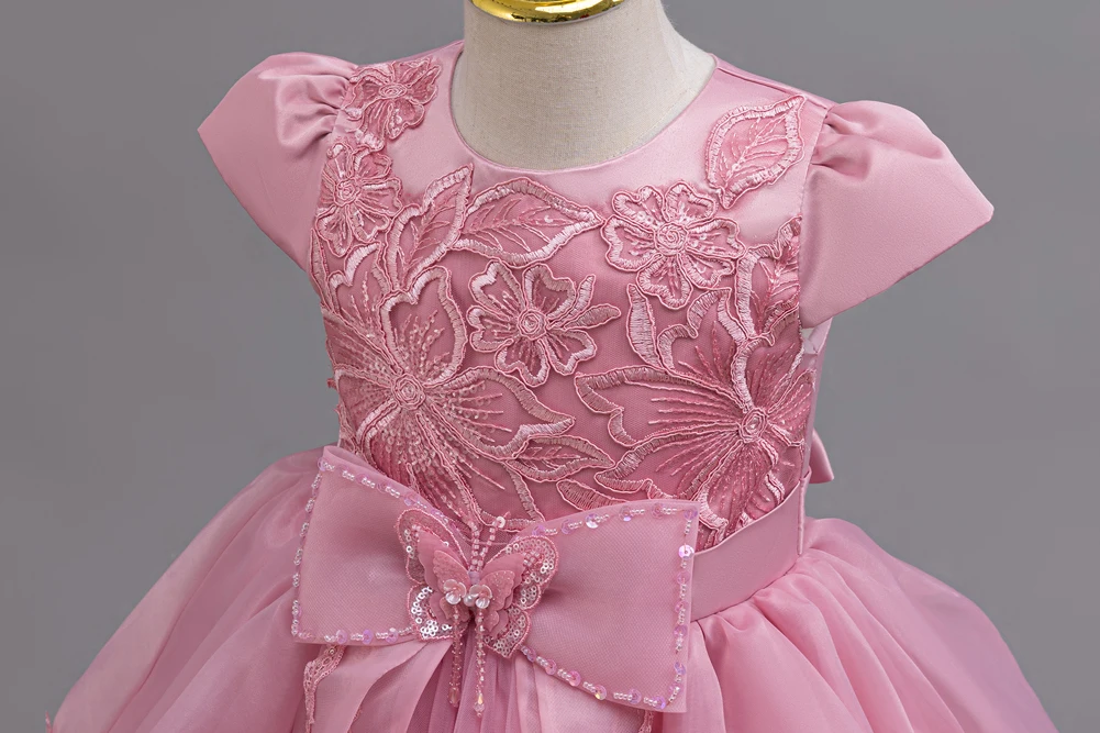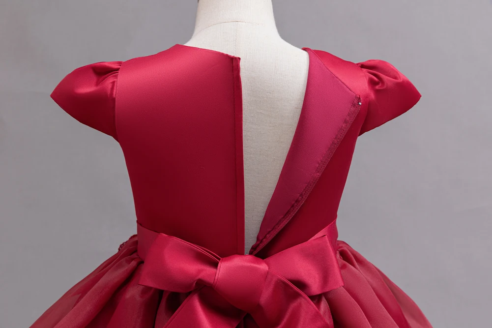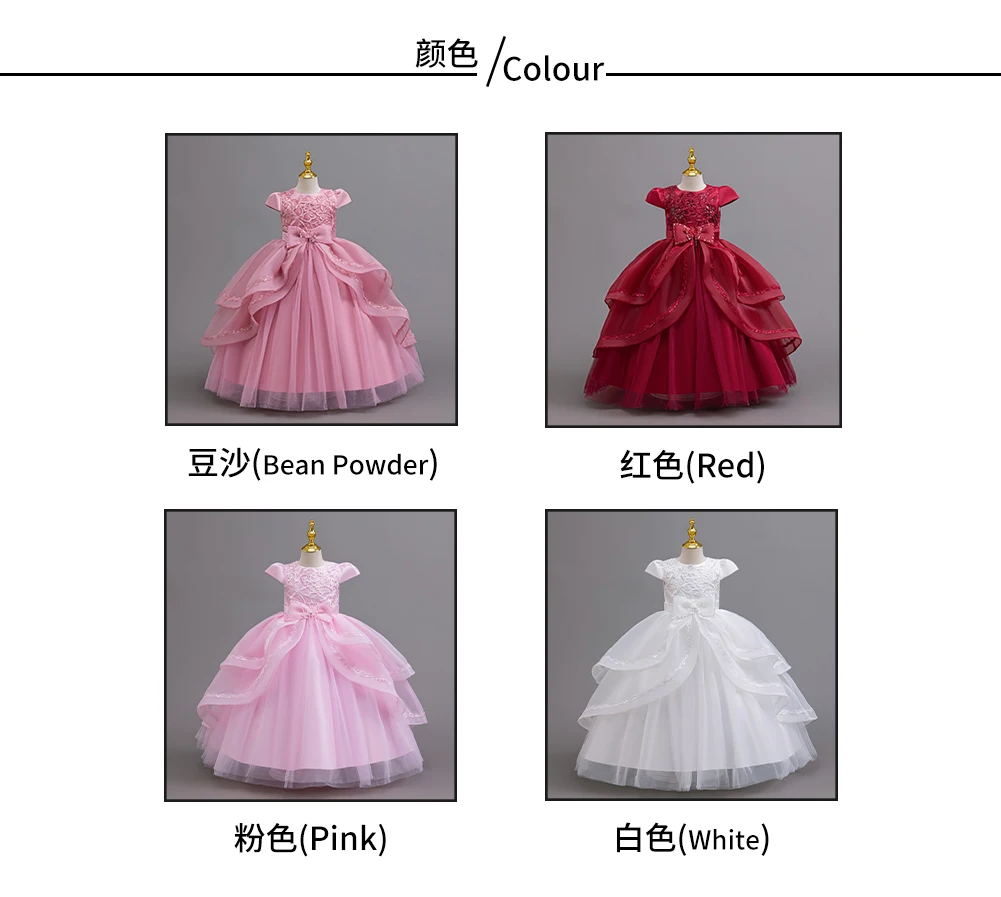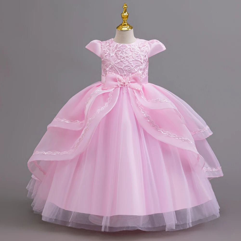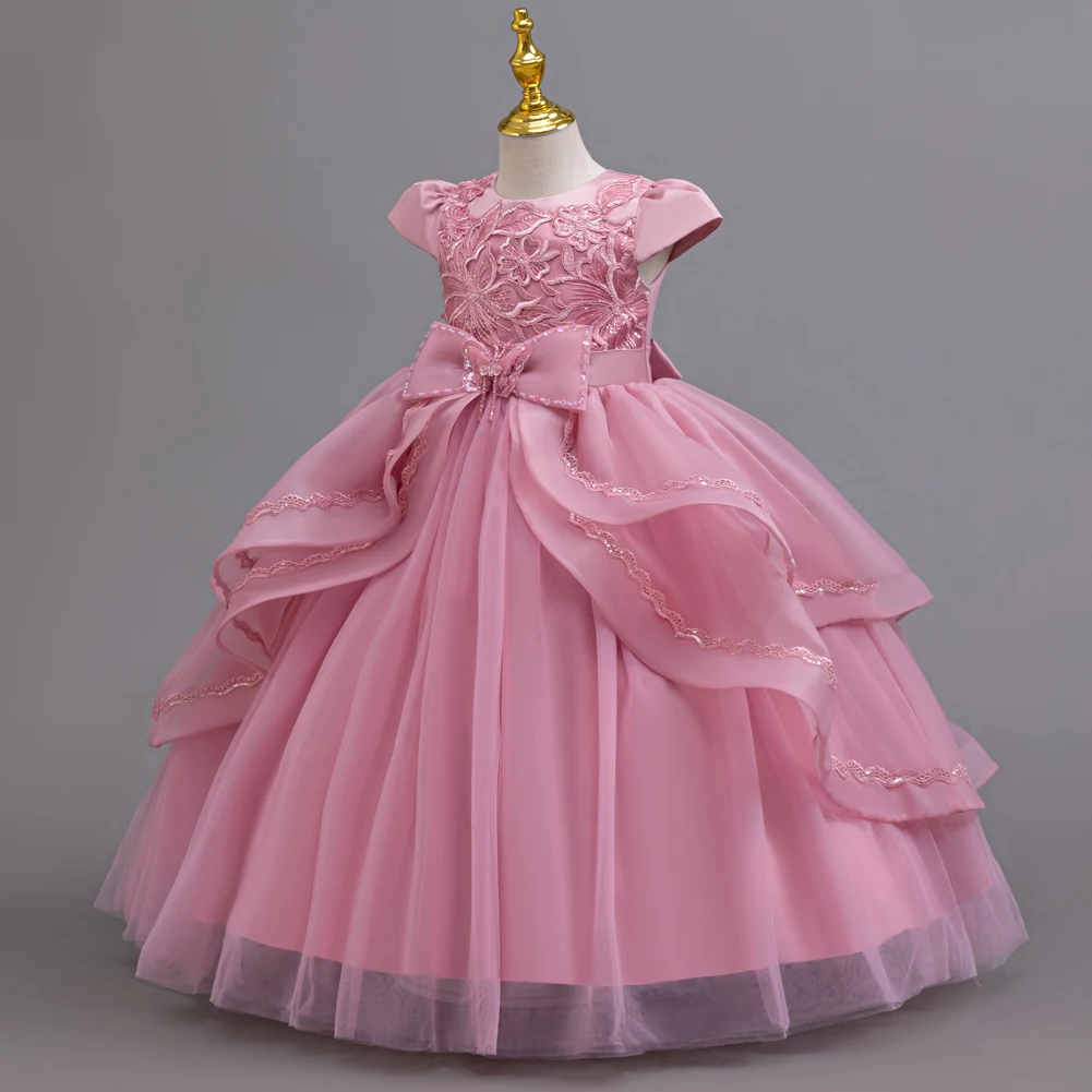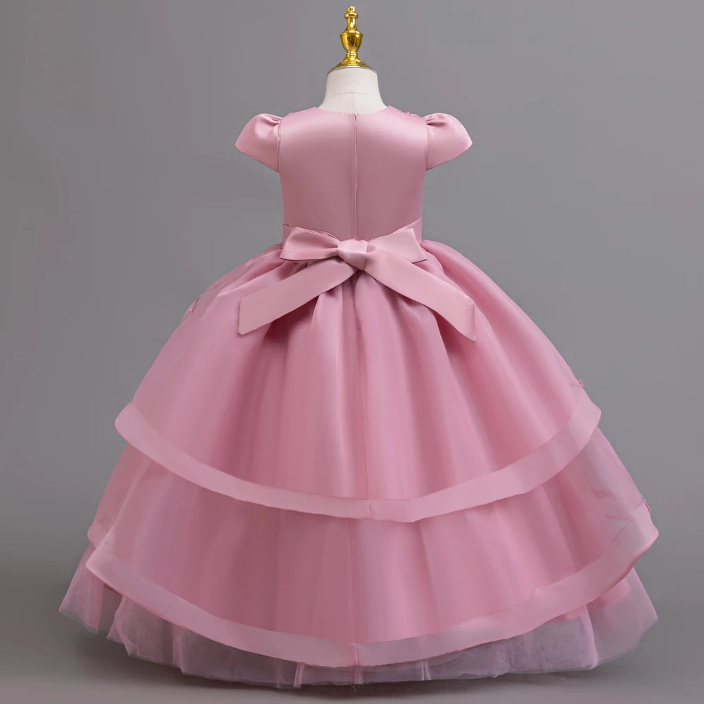 Kids Princess Dress With Bow Puffy Tulle For Advanced Piano Performance Evening Dinner Wedding Hostess Formal Party Outfit